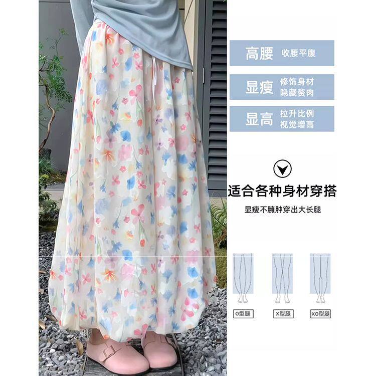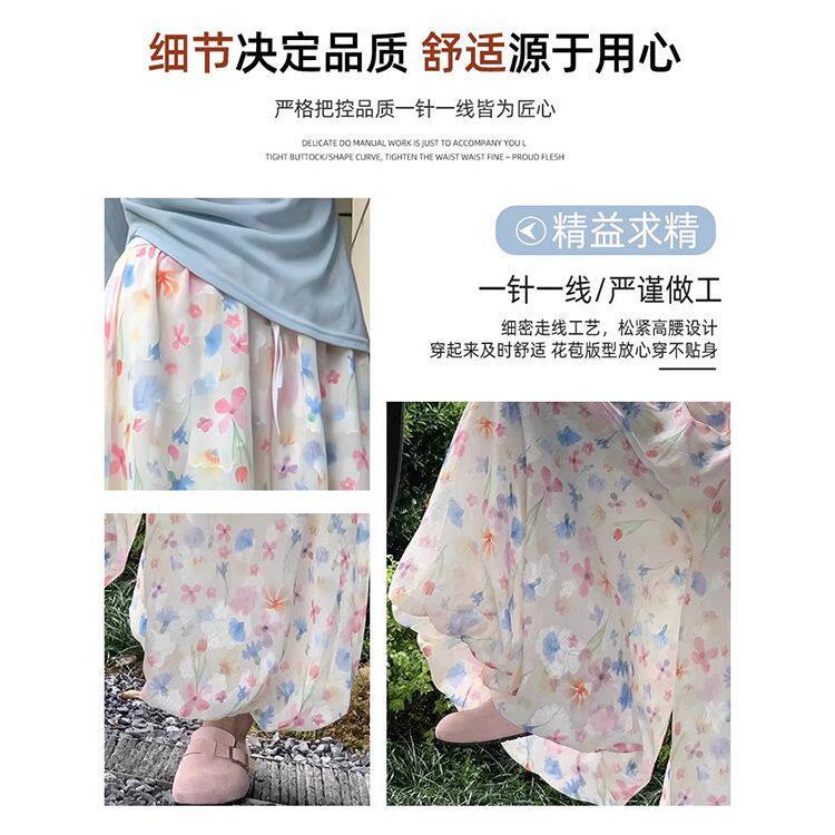 2025新款秋季小个子碎花花苞裤宽松显瘦休闲冰丝阔腿裙裤女潮