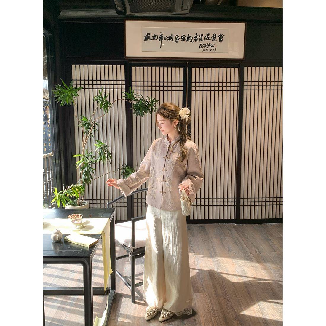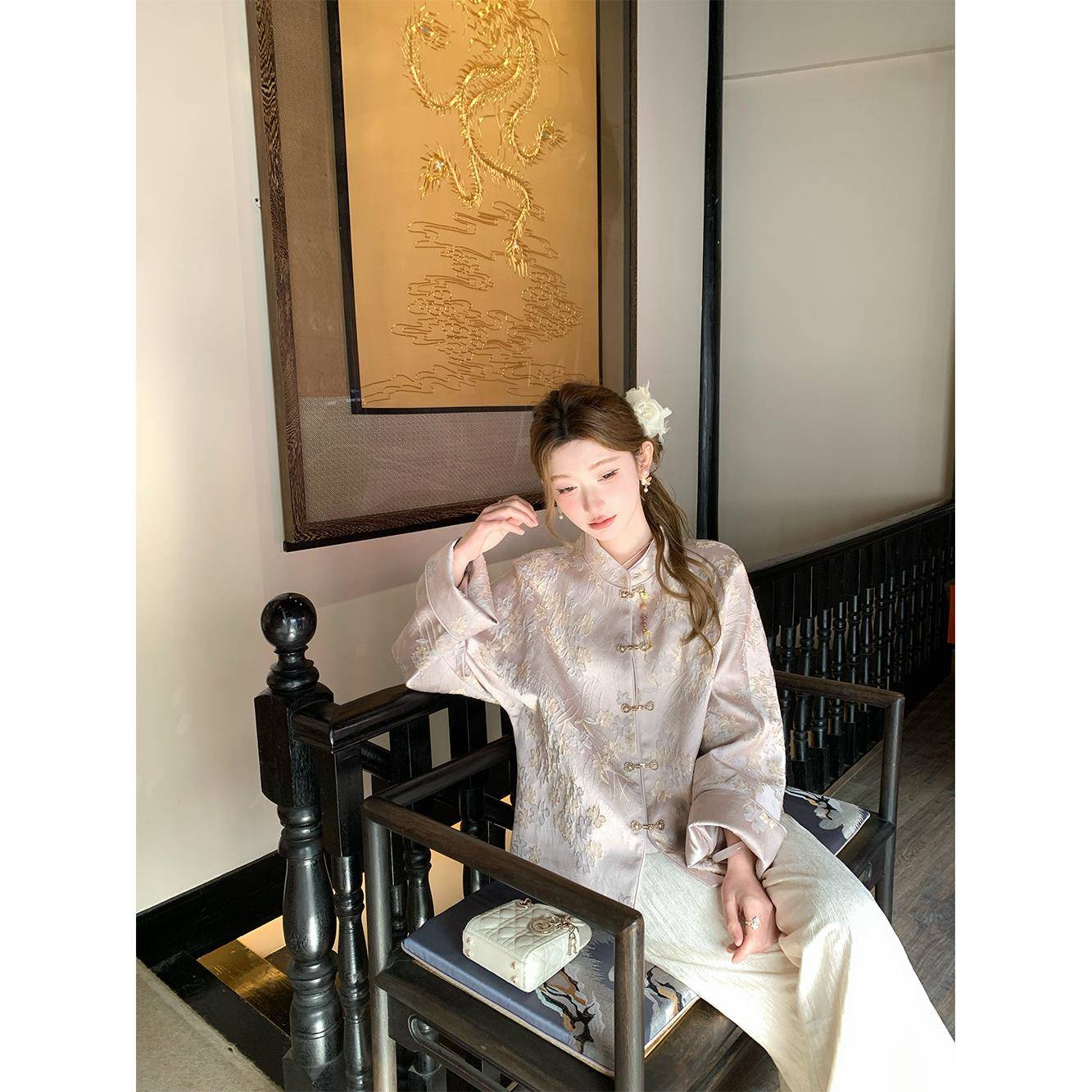 NMIOK 重工提花新中式国风紫色外套女25初春独特漂亮短款休闲上衣