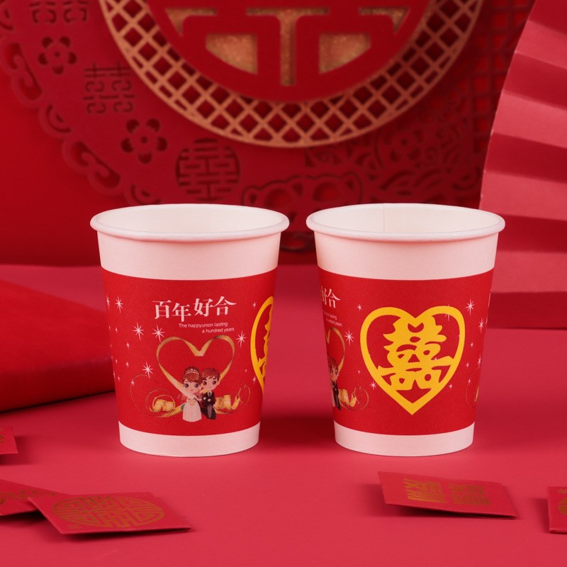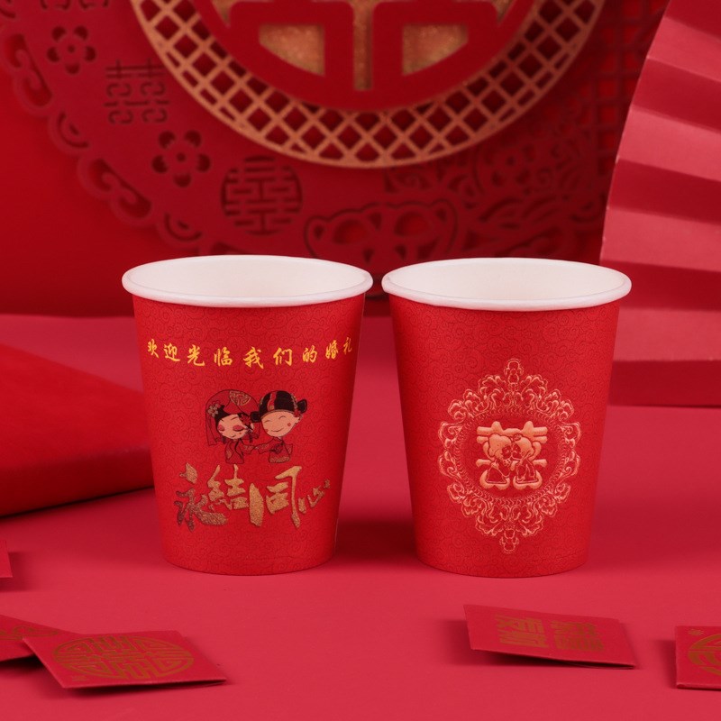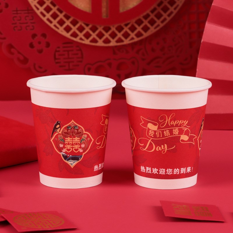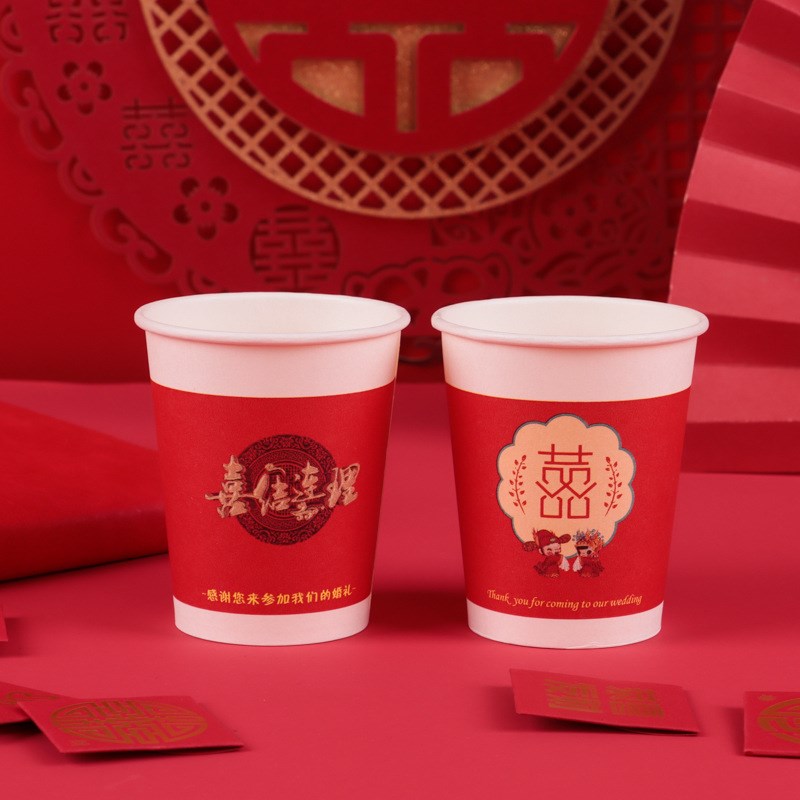 新款现货婚礼一次性纸杯可制定结婚红色加厚喜纸杯婚庆喜字杯
