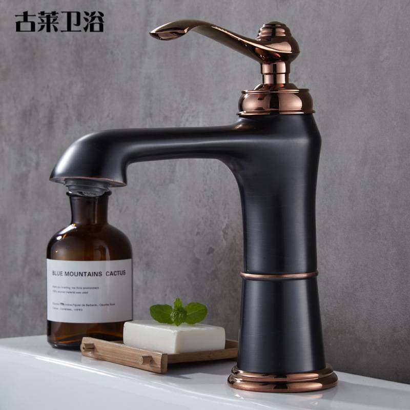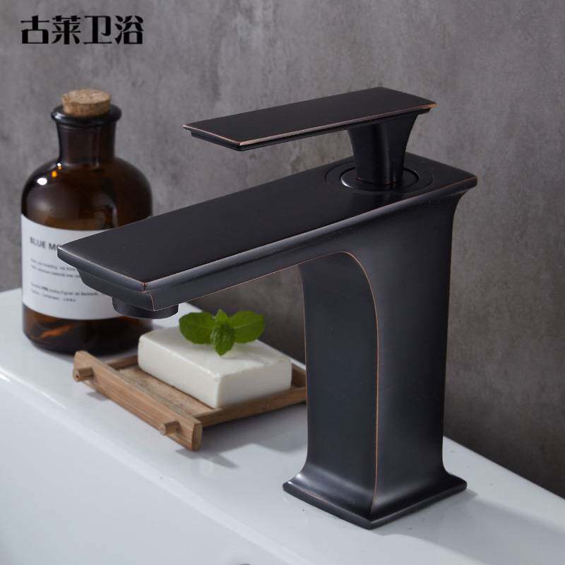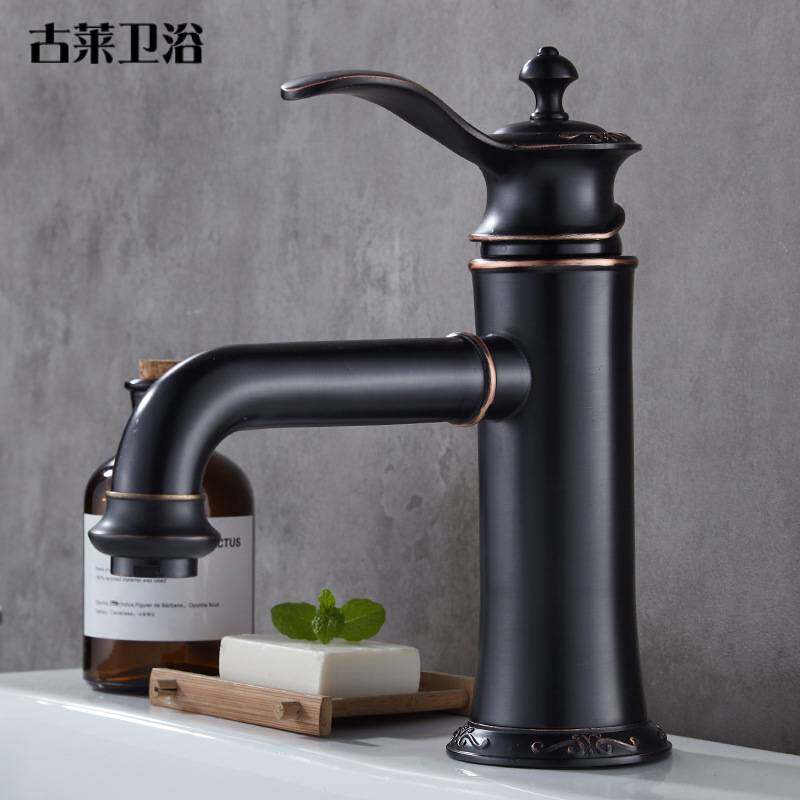 黑色水龙头冷热洗脸盆面盆龙头美式卫生间洗手盆全铜单孔台盆龙头