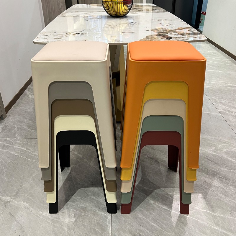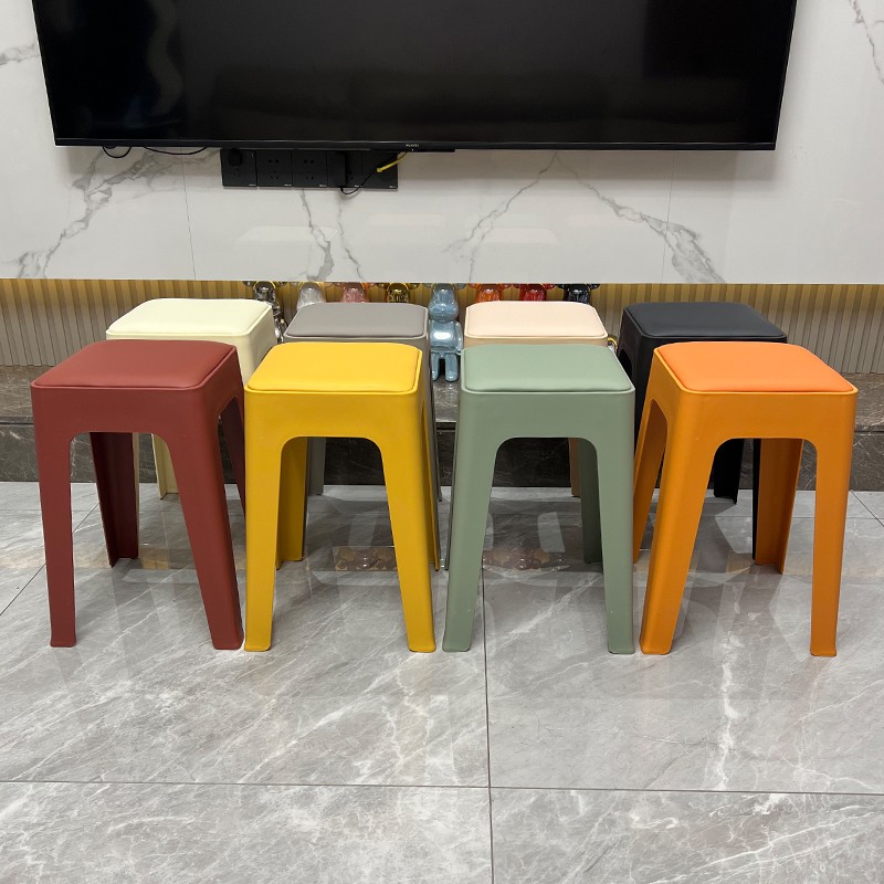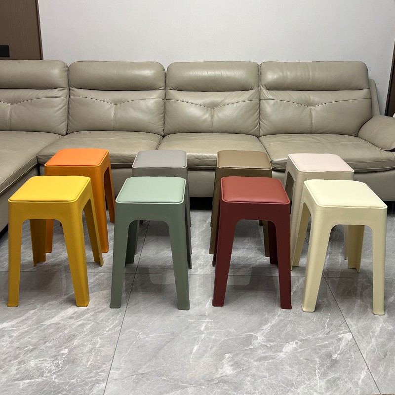 2张包邮 风餐桌凳子皮革软包海棉坐面坐感舒服可叠摞塑料凳子