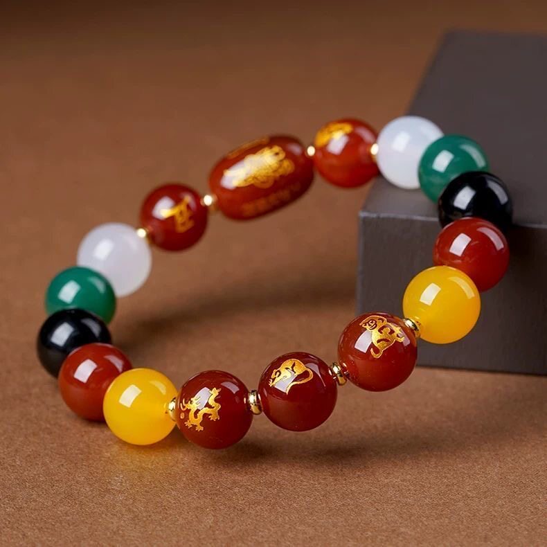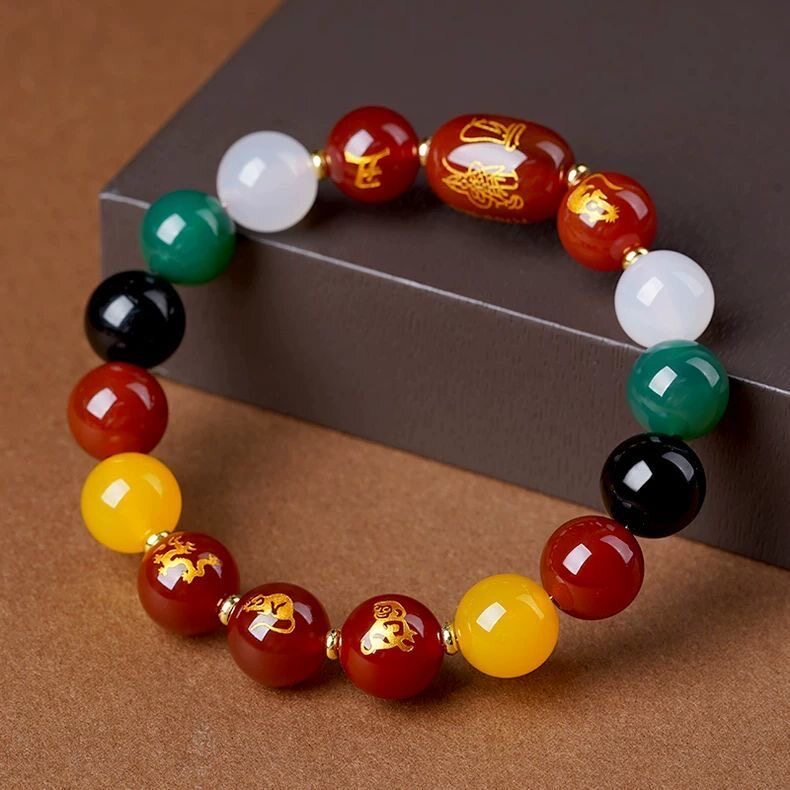 五色玛瑙手串十二生肖三合六合款男女款珠串手工简约百搭珠链手链