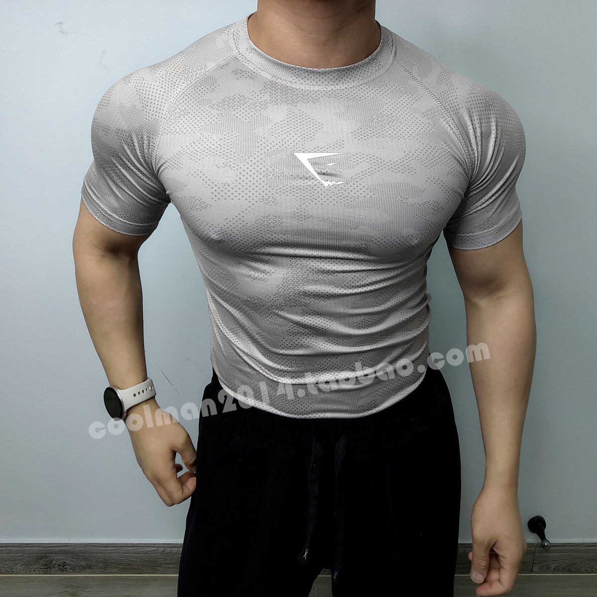 高弹休闲运动紧身衣男士健身速干短袖T恤肌肉男迷彩上衣跑步半袖