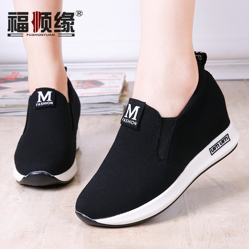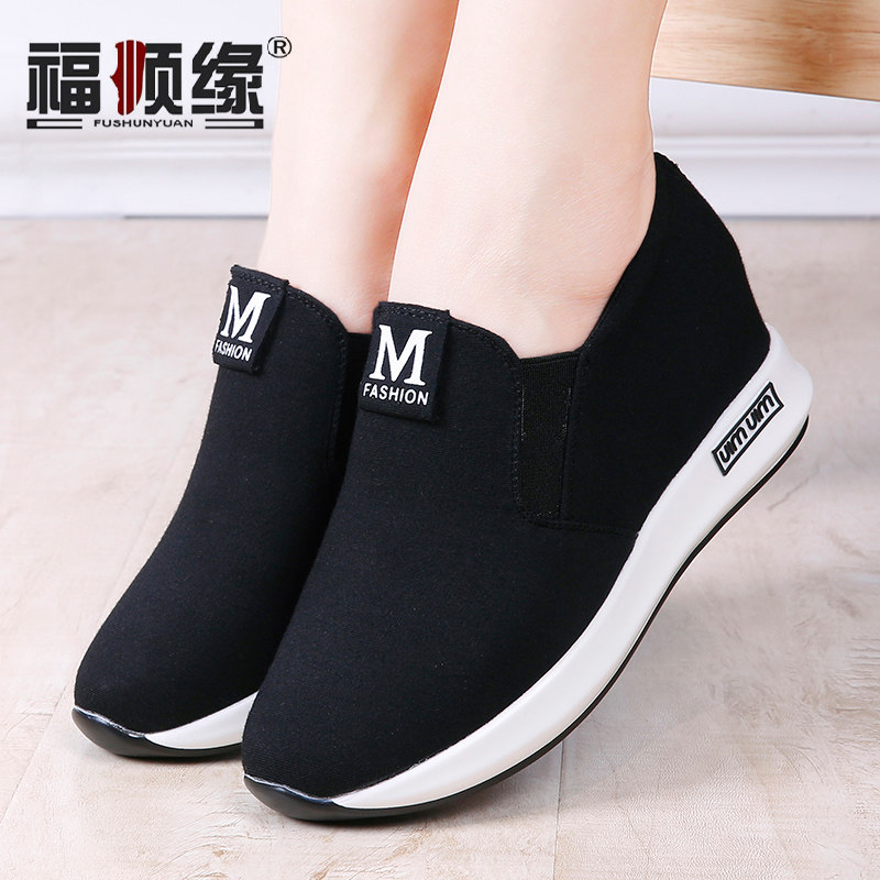 福顺缘春秋内增高老北京布鞋乐福鞋加厚底时尚女单鞋户外休闲女鞋