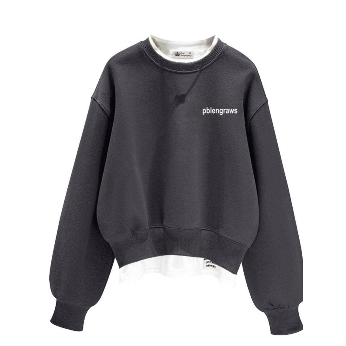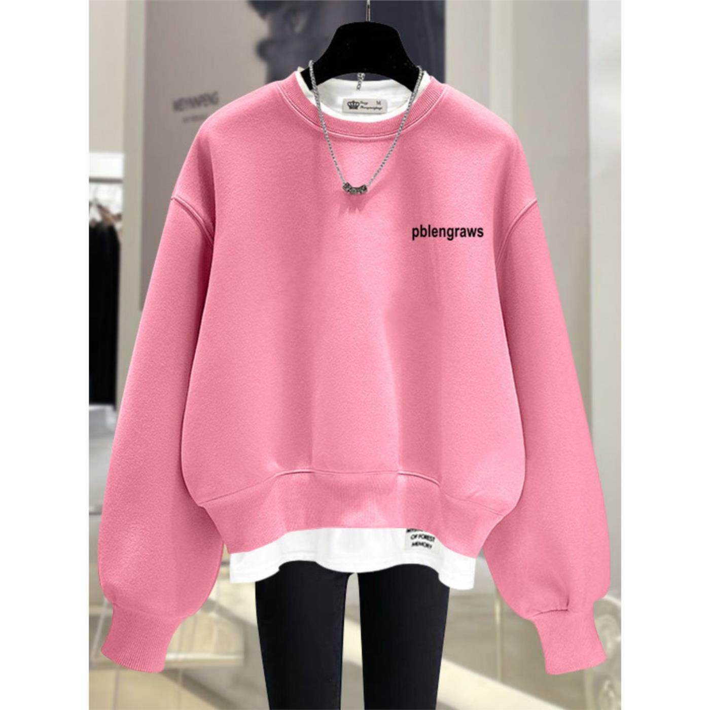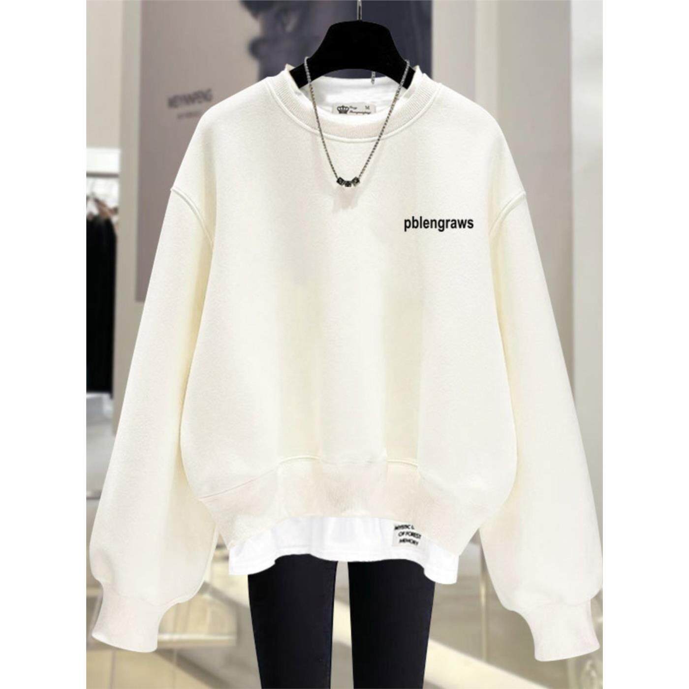 高级灰假两件加绒卫衣女宽松2025秋冬新款韩版简约字母小个子上衣
