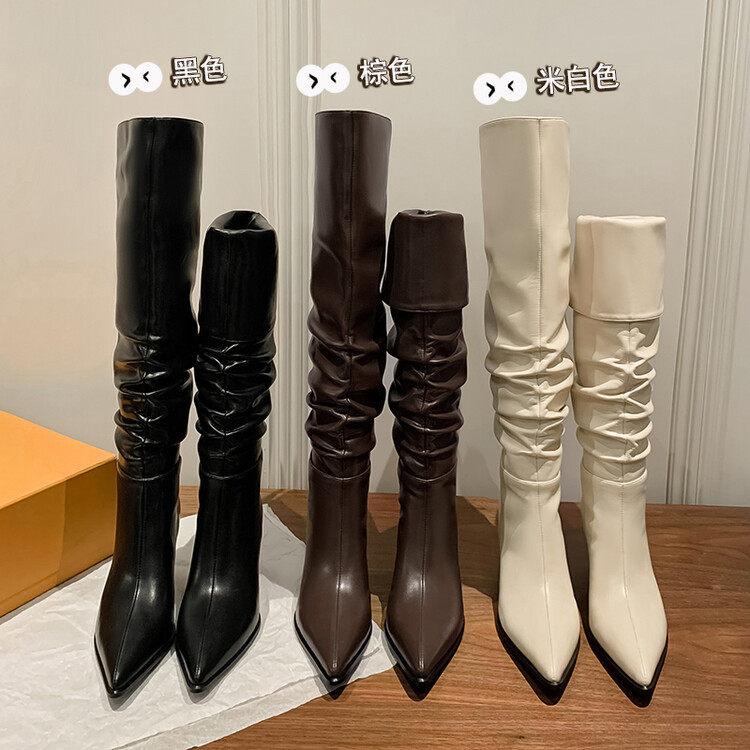 2023秋冬欧美风时尚简约细跟高跟浅口尖头性感夜店显瘦短靴女靴子