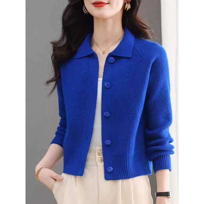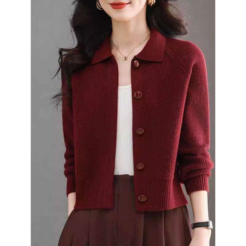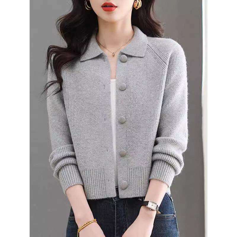 春季短款翻领毛衣小外套女春秋新款外搭配裙子上衣小个子针织开衫