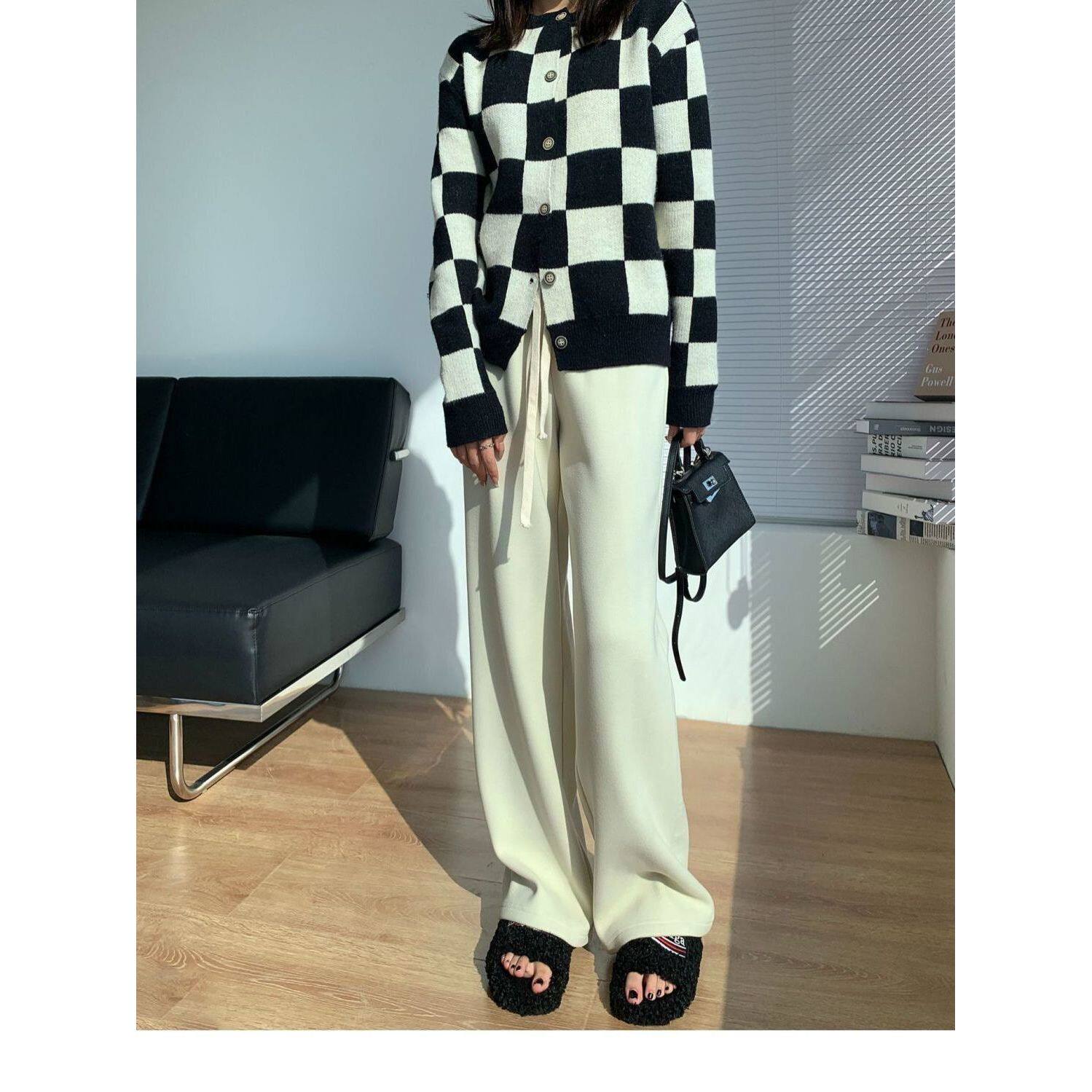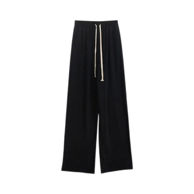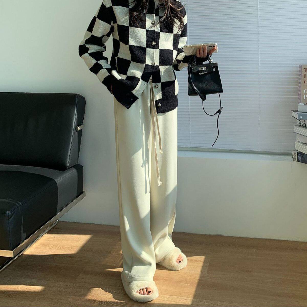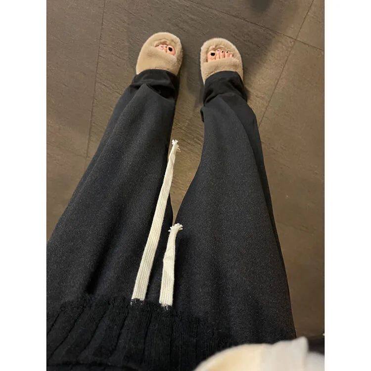 德绒保暖加长拖地裤女春秋百搭高腰阔腿裤韩版抽绳休闲直筒长裤女