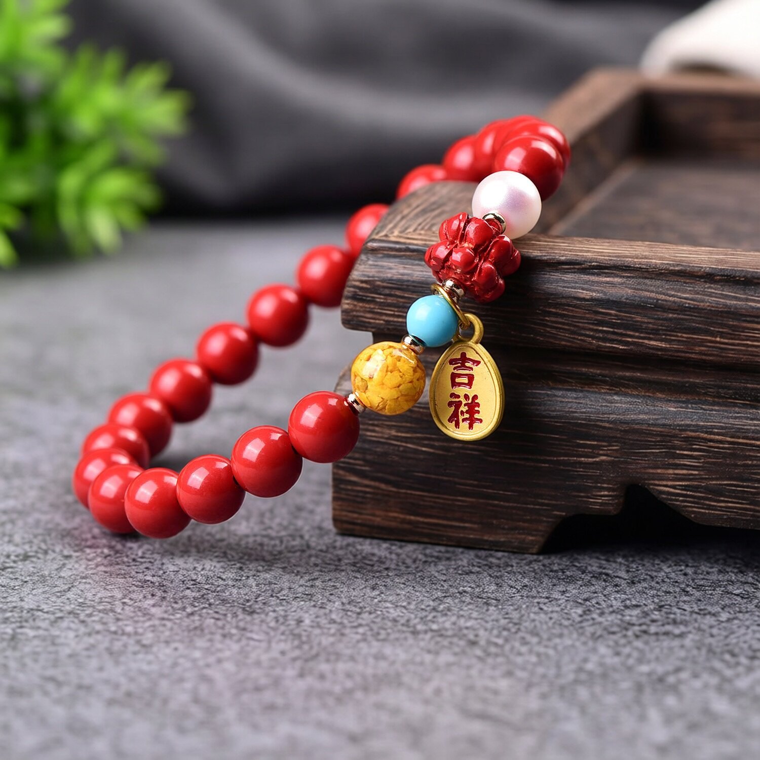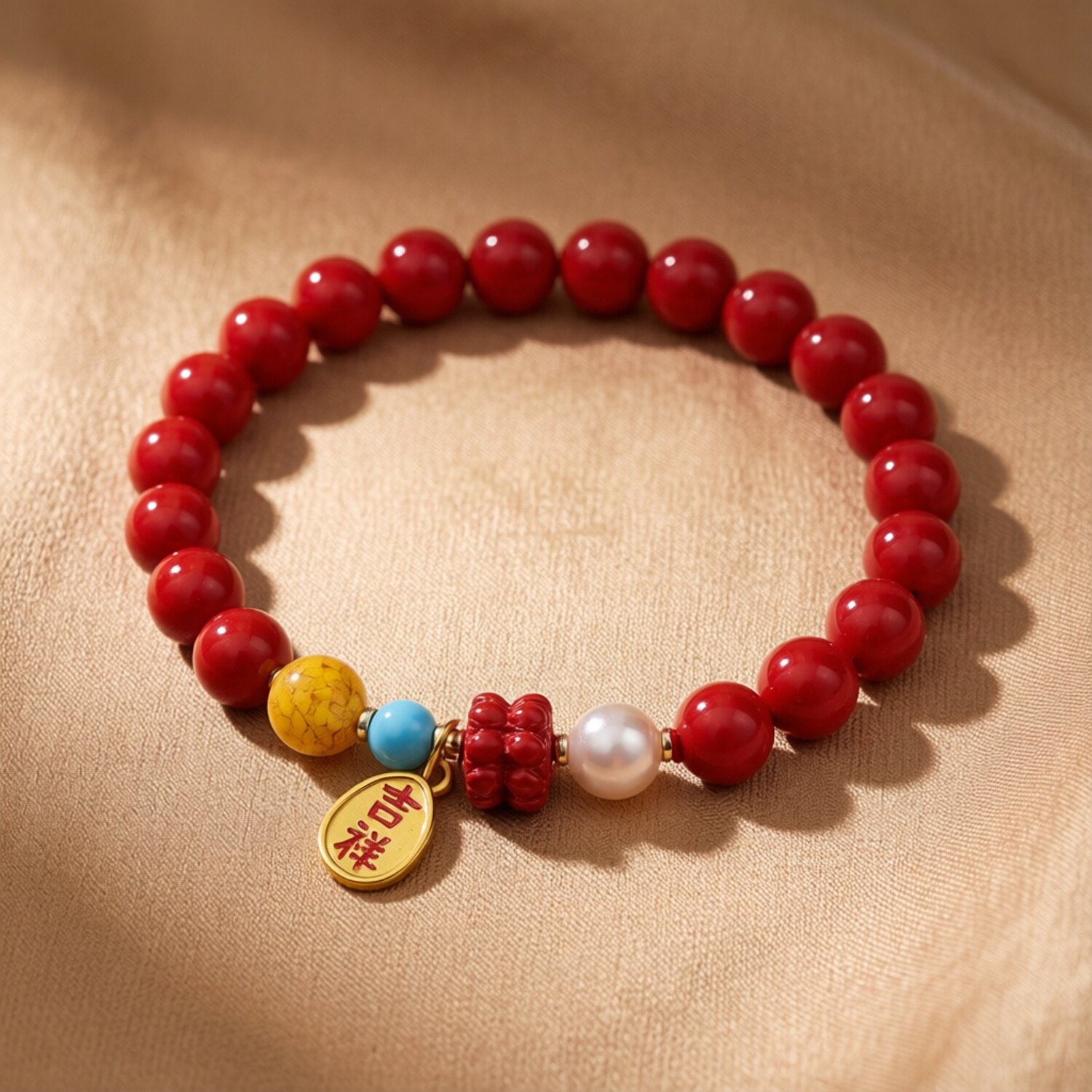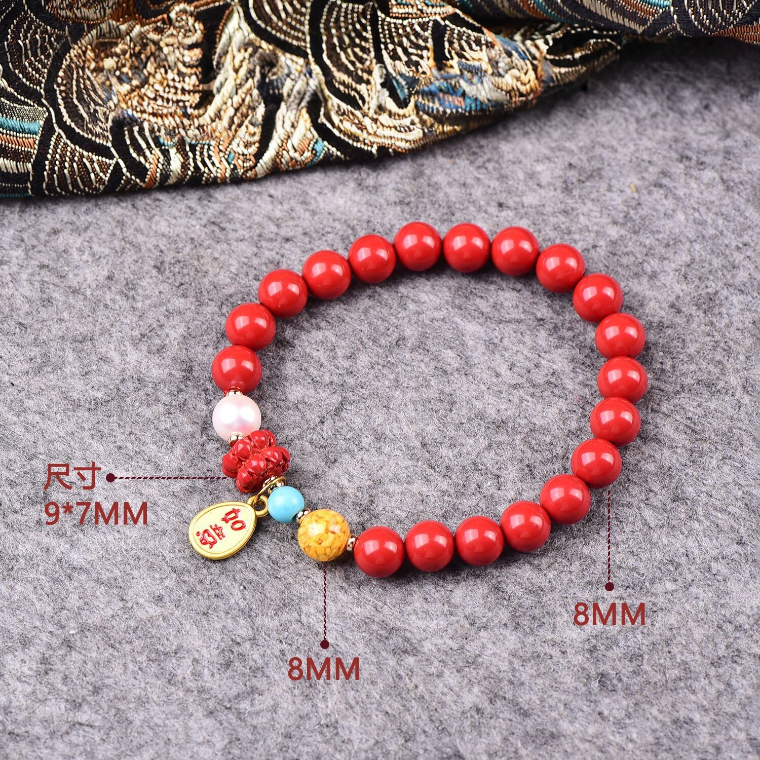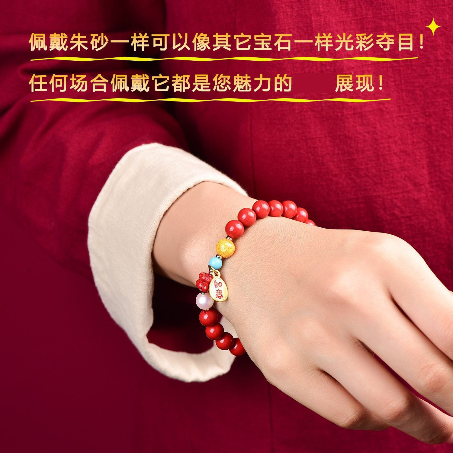 高含量朱砂手串女招财转运纳福贝珠净心莲花吉祥如意手链
