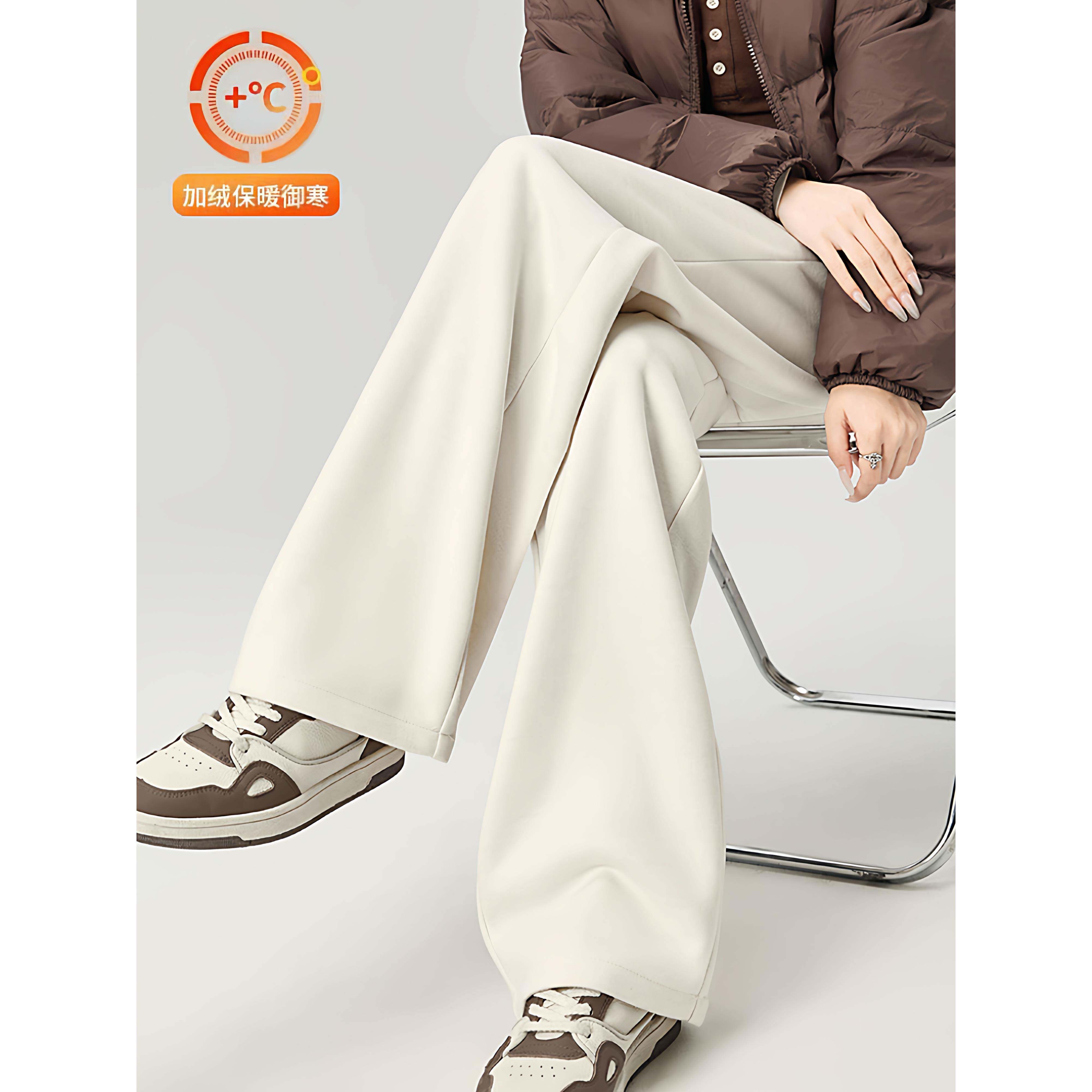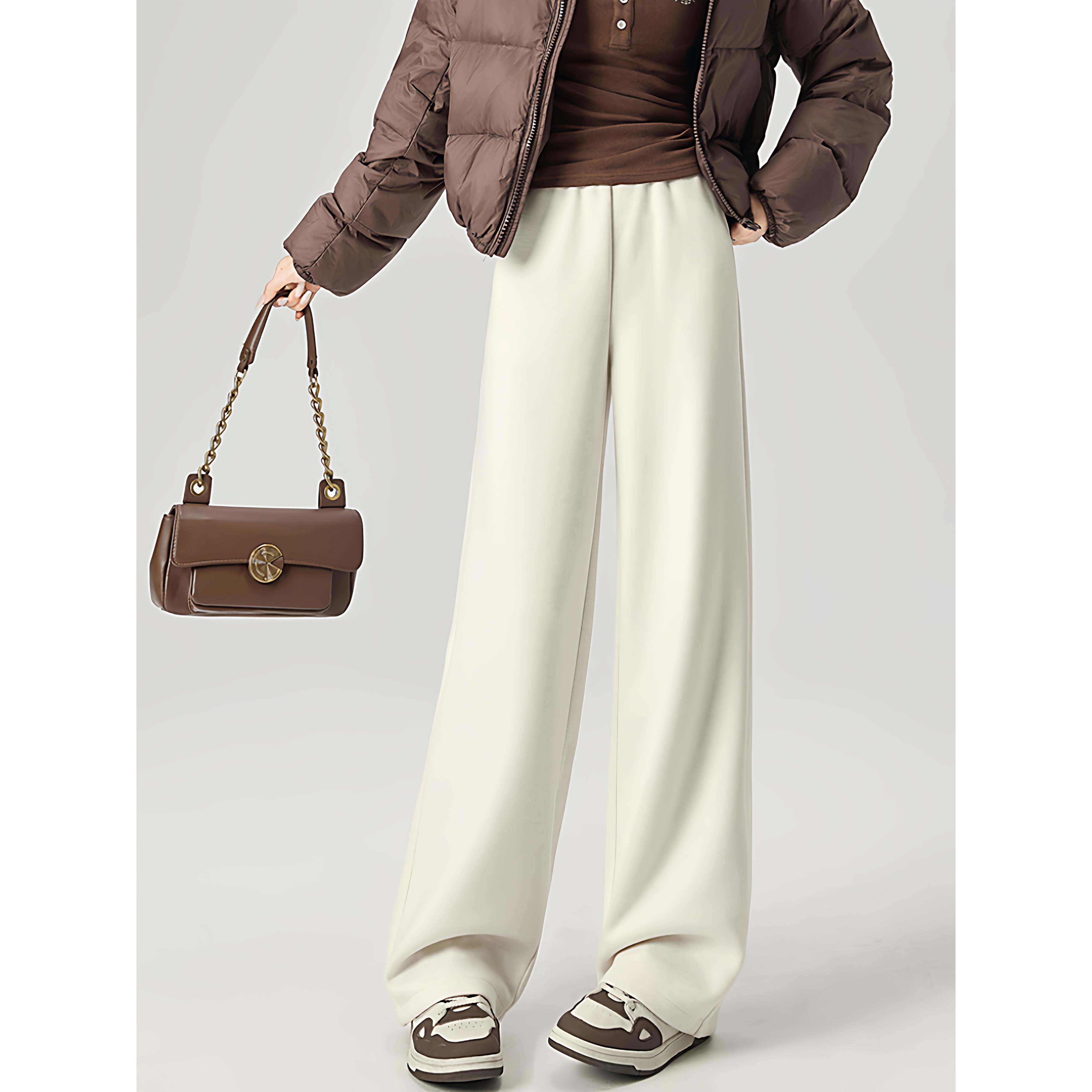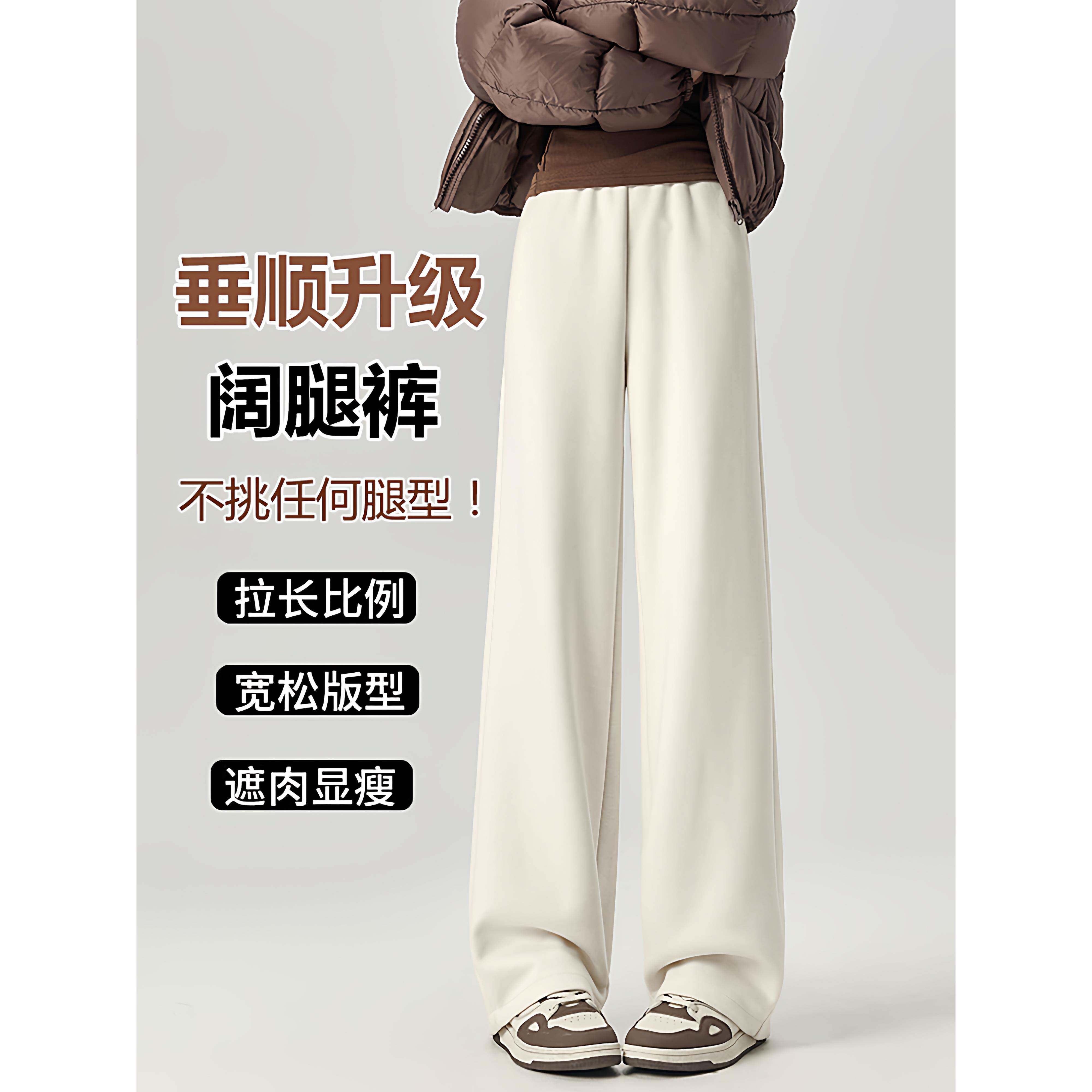 白色羊毛呢阔腿裤女秋冬季款2025新款醋酸垂感软糯加绒窄版直筒裤