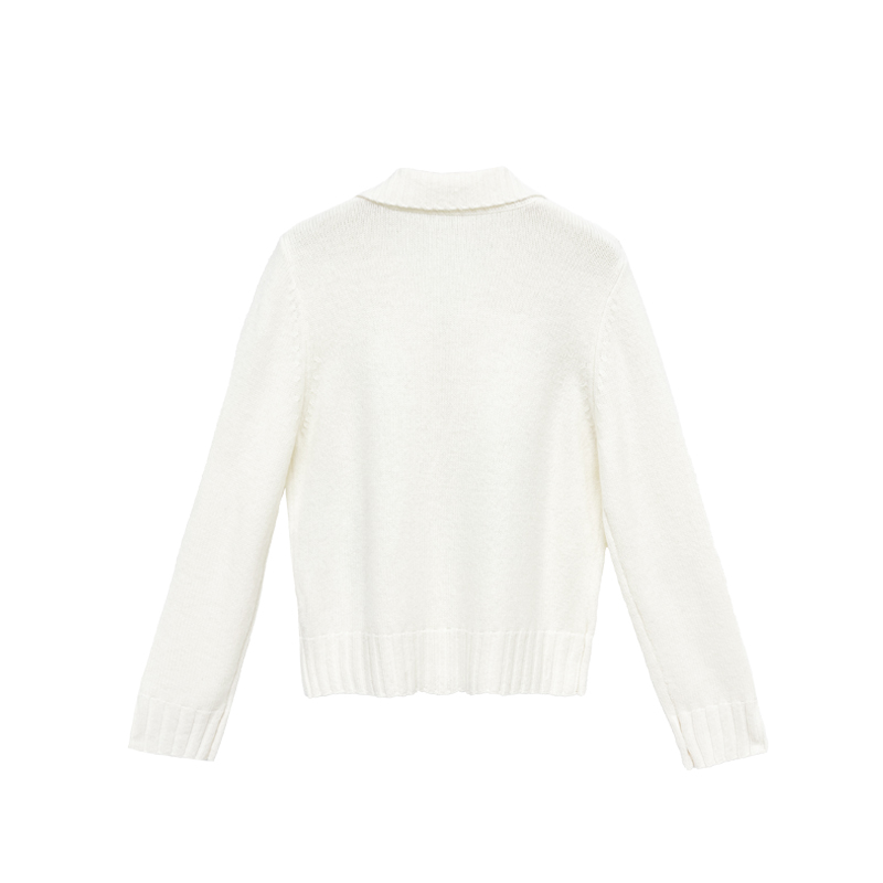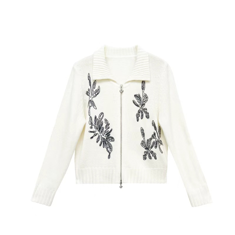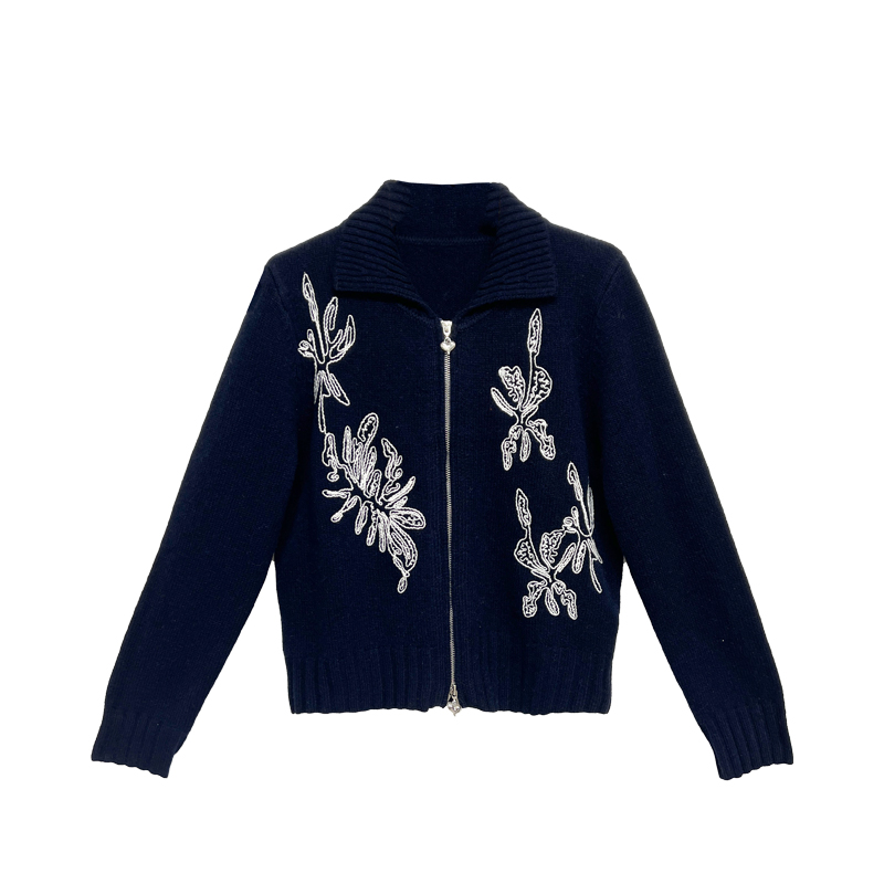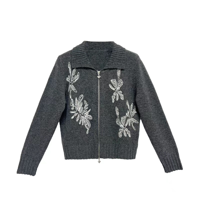 【橙庐】5A7220翻领钩花双拉链绵羊毛开衫 春秋女士气质时尚优雅