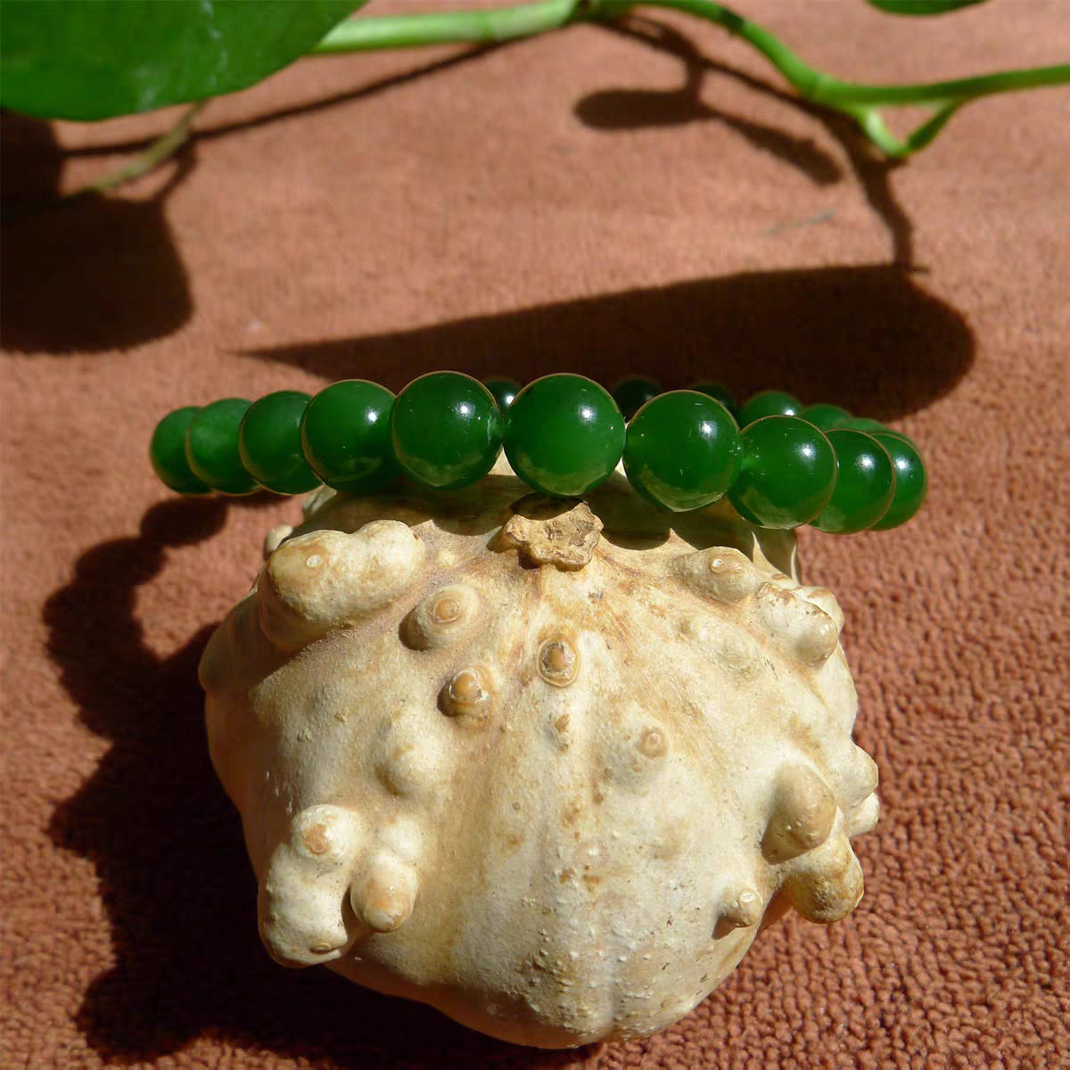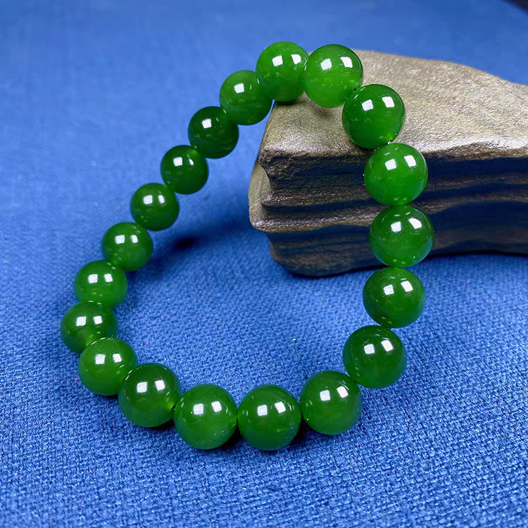 新疆和田玉手链天然玉石俄罗斯碧玉菠菜绿手串老坑阳绿男女款圆珠