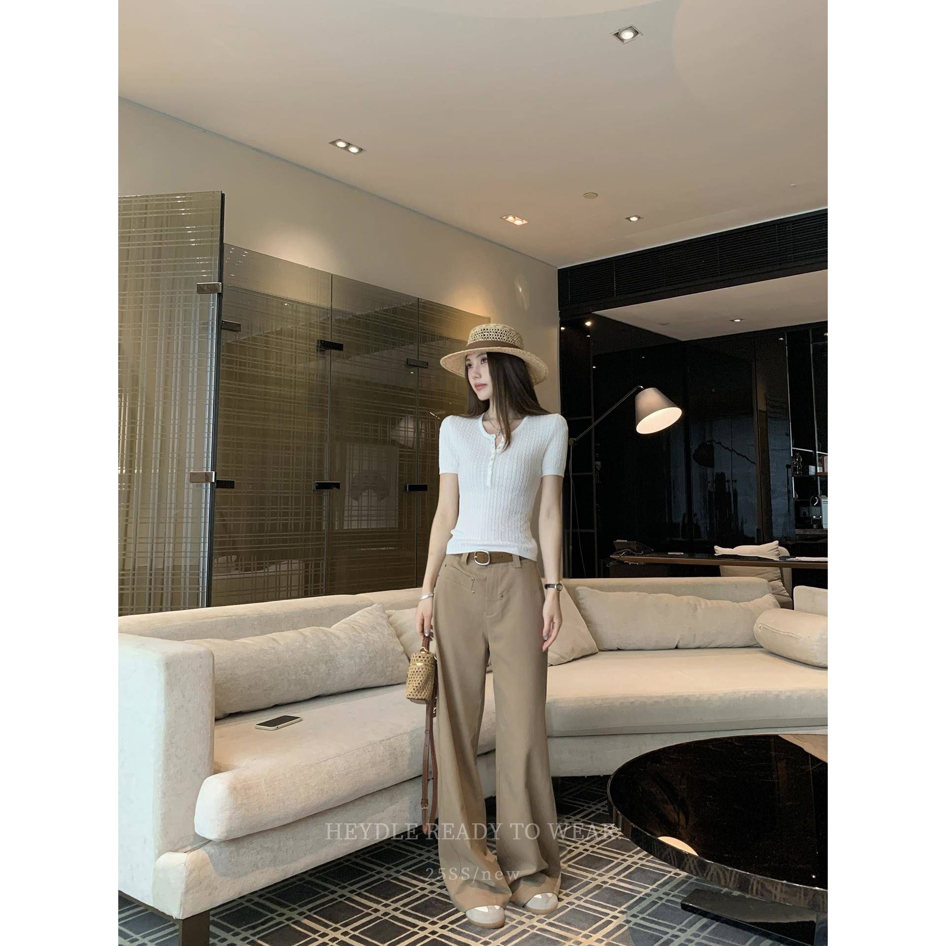 黑豆哼哼 波士顿质感*老钱风卡其色直筒休闲裤女秋水洗复古阔腿裤