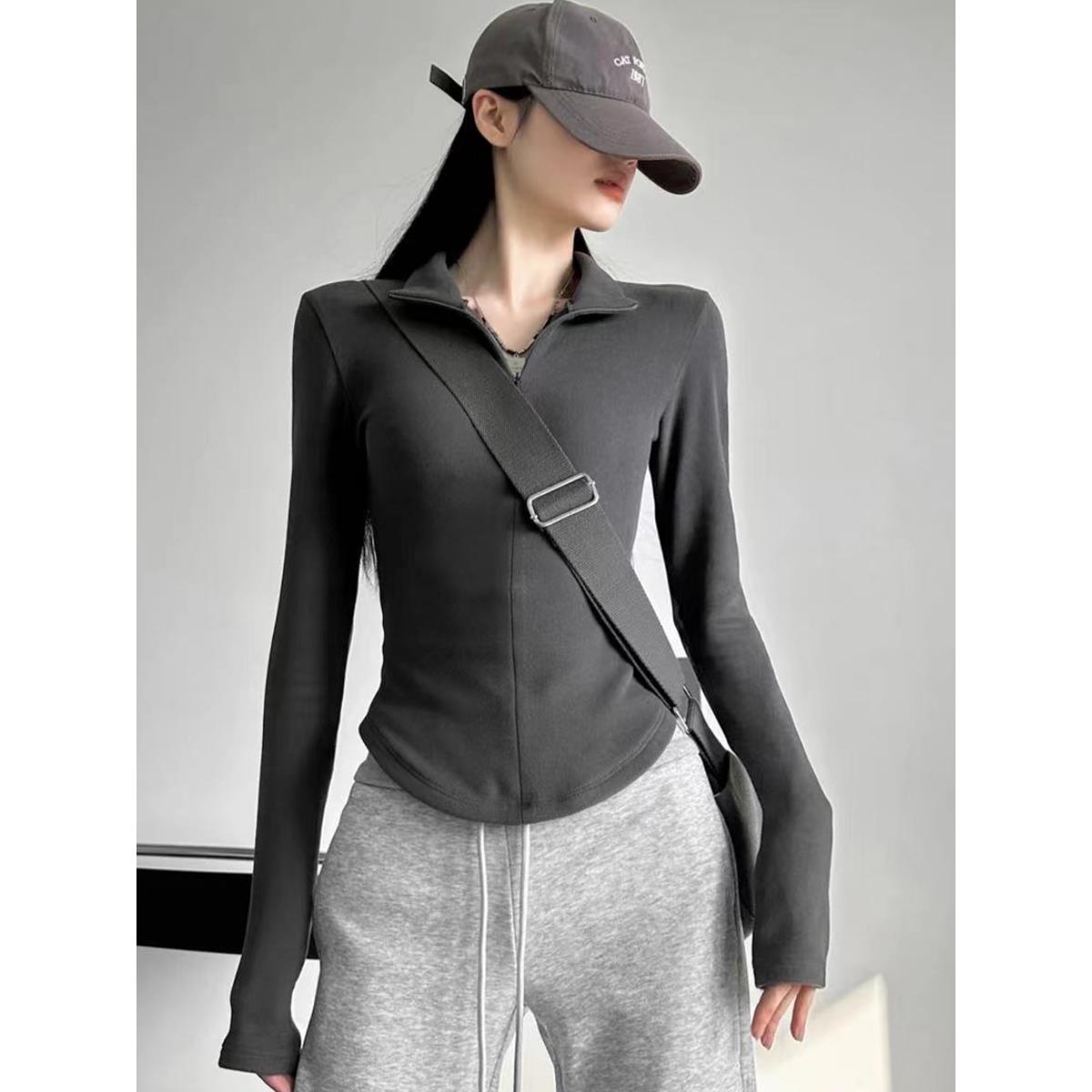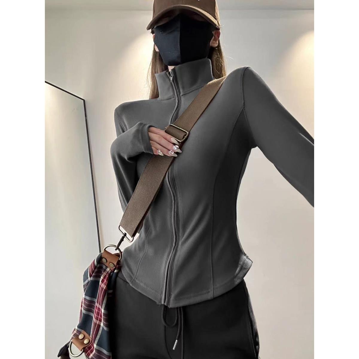 欧货双面德绒加厚保暖立领卫衣T恤女秋百搭修身开衫拉链打底上衣