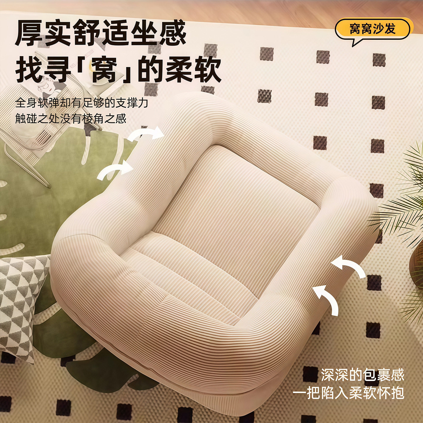 懒人沙发可躺可睡卧室单人休闲榻榻米新款窝窝小沙发阳台客厅躺椅
