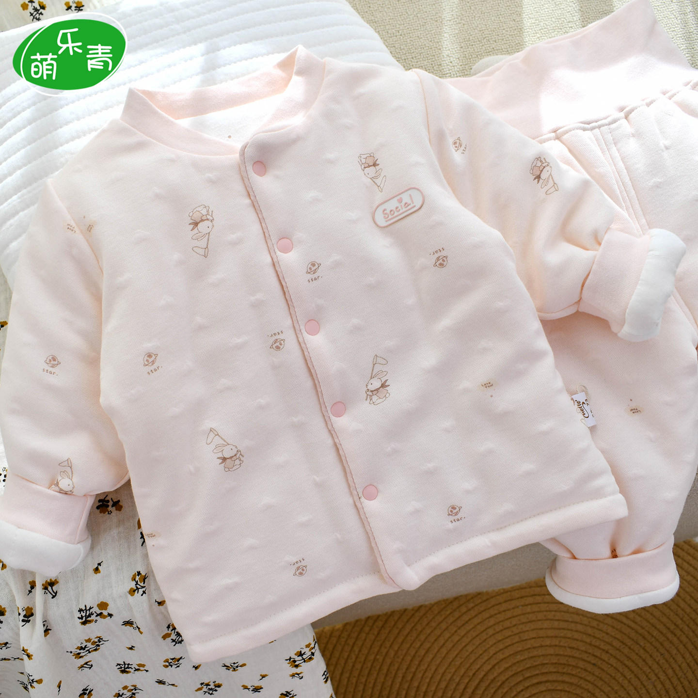 宝宝加棉分体套装80克保暖高腰秋天夹棉a类纯棉冬婴儿薄棉两件套