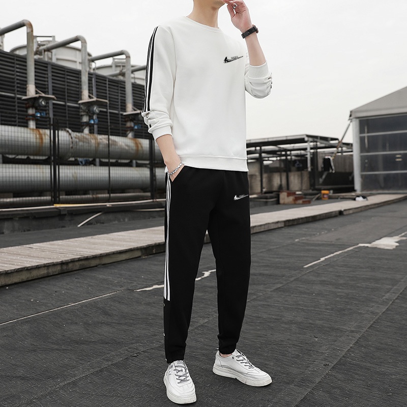 耐克顿纯棉运动套装男士秋冬季休闲卫衣大码潮流帅气青少年两件套