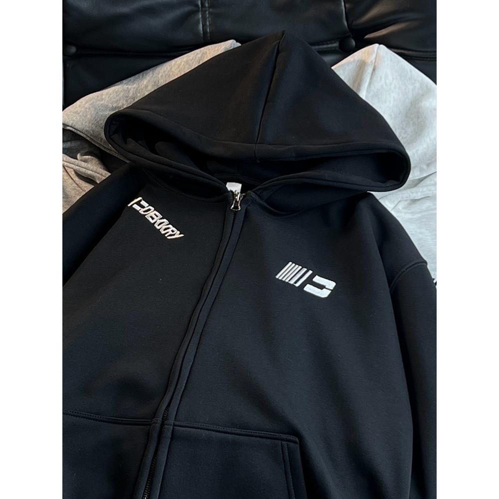 立体刺绣~连帽拉炼开衫卫衣女潮牌春秋重磅宽松美式休闲加绒外套