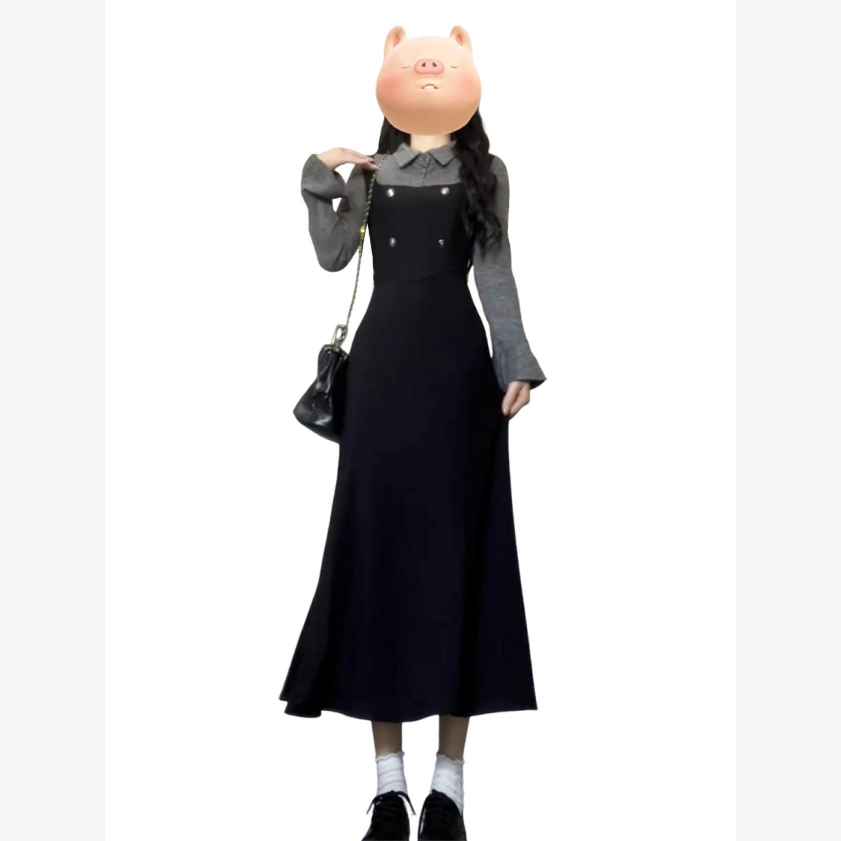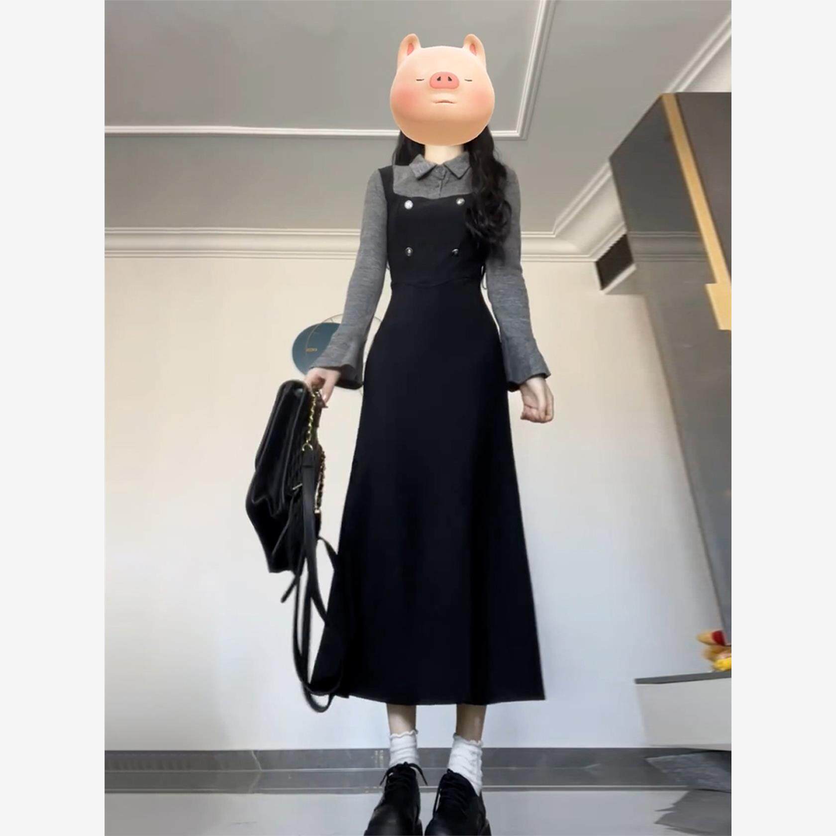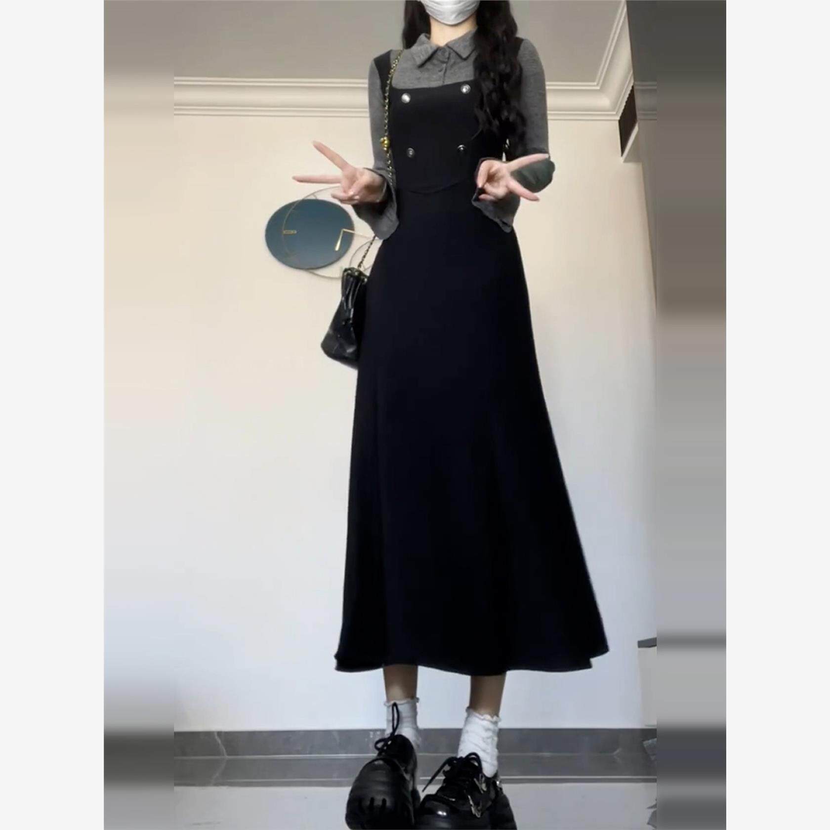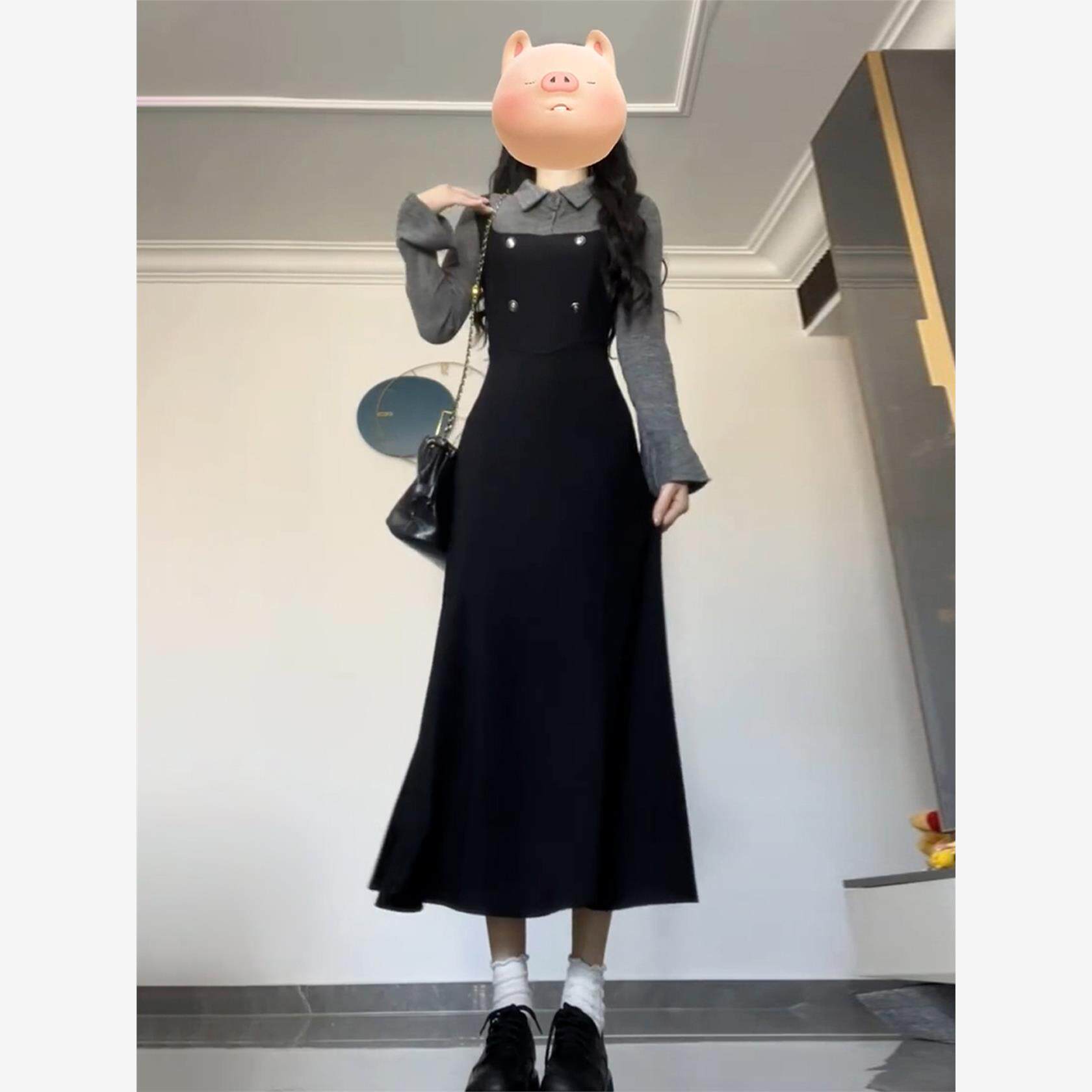 法式大方得体假两件长袖连衣裙女早秋季2025新款气质绝美掐腰长裙