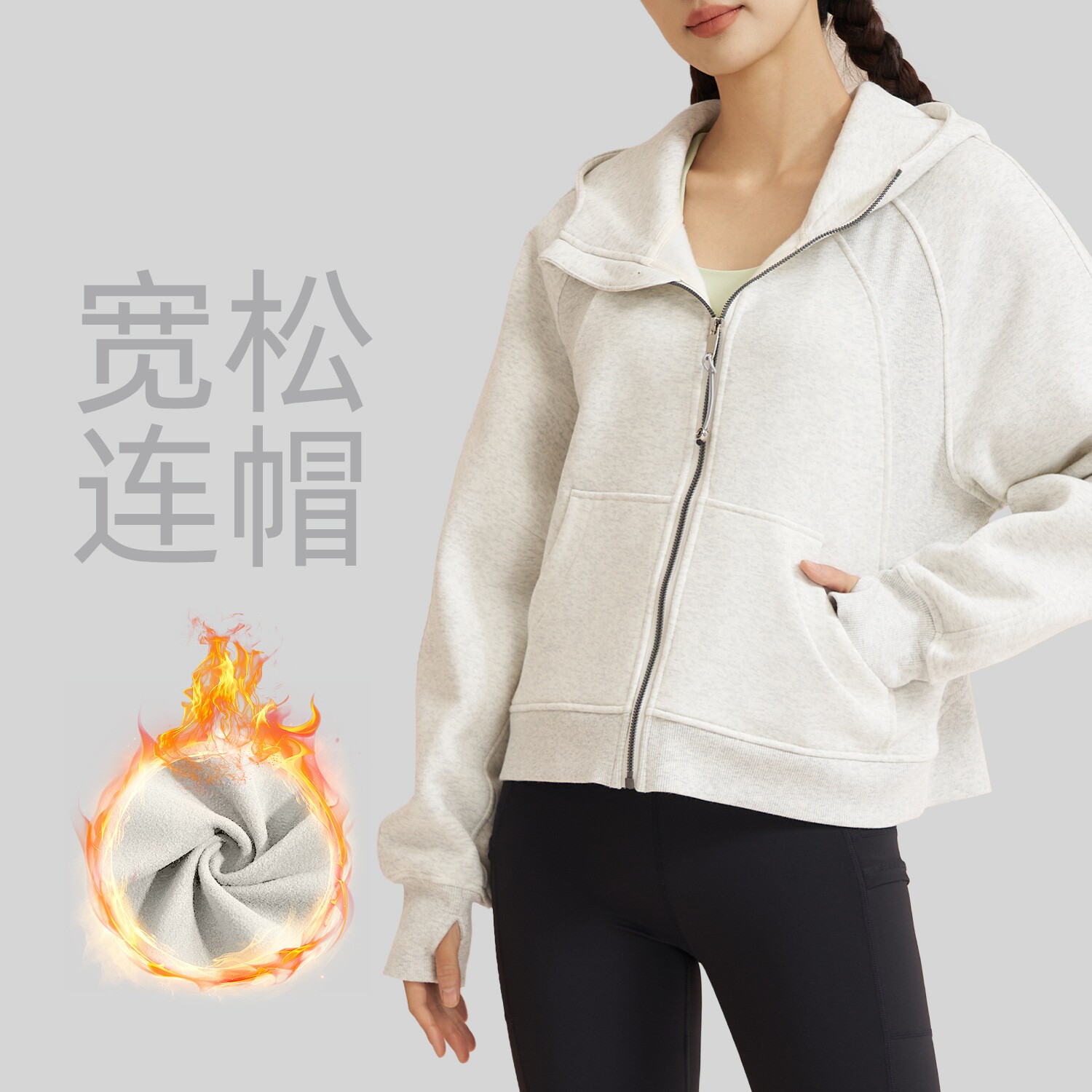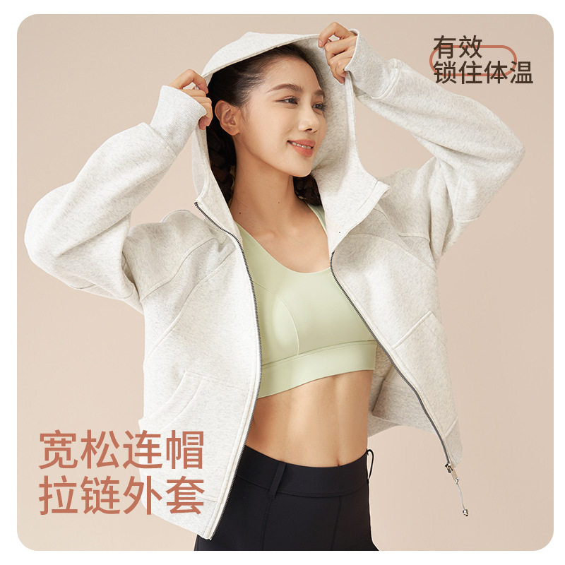 肥小棉无标时尚秋冬新款加厚连帽运动卫衣女户外宽松休闲加绒外套