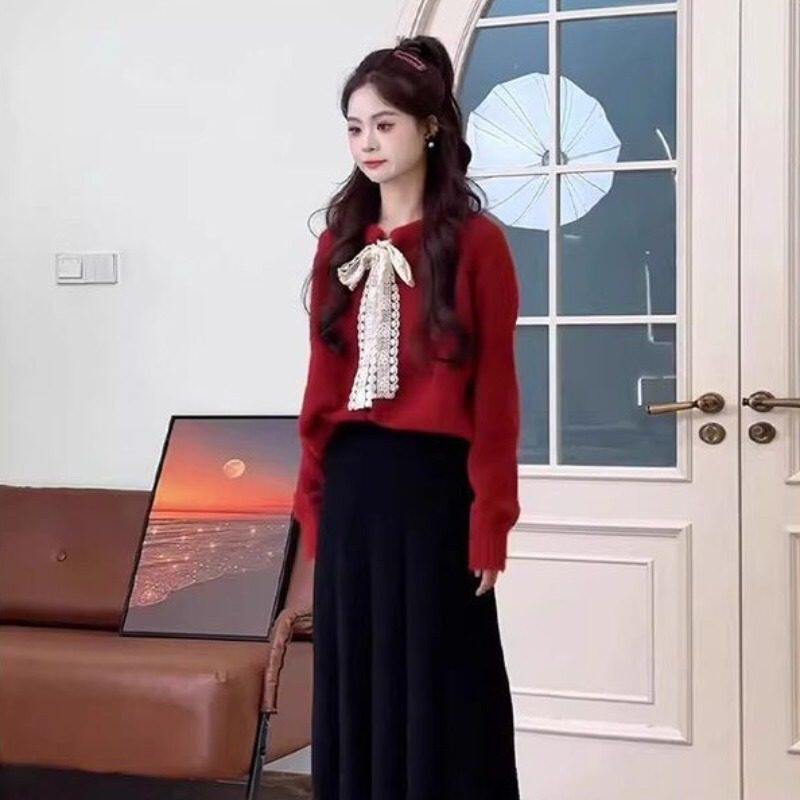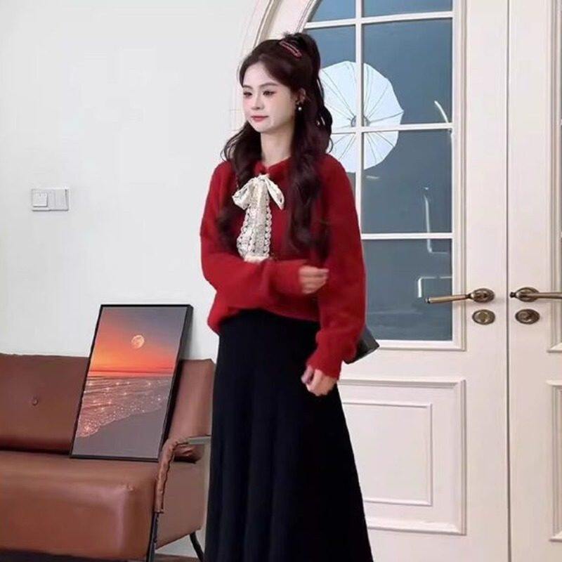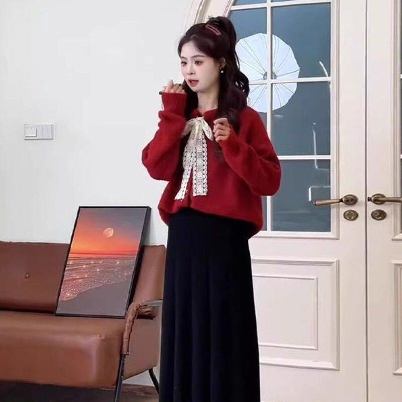 深冬季女装2026新款超火穿搭配一整套韩系巨好看的圣诞红色两件套