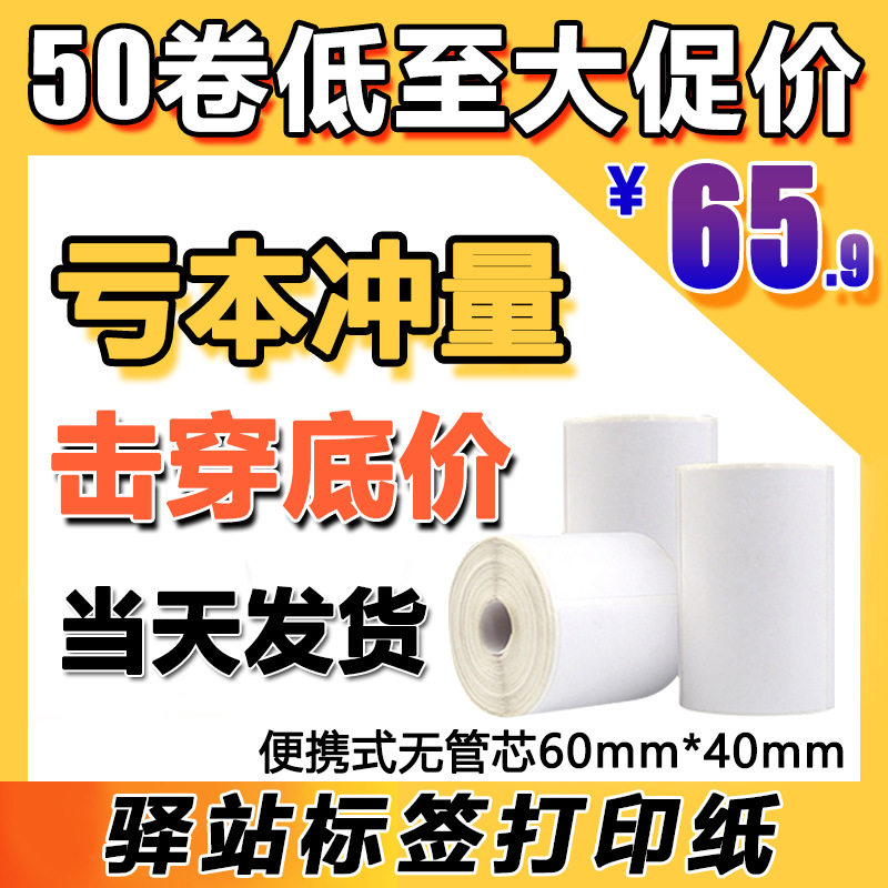 热敏打印纸便携式50卷热敏不干胶标签纸60x40mm打印贴纸支持定制