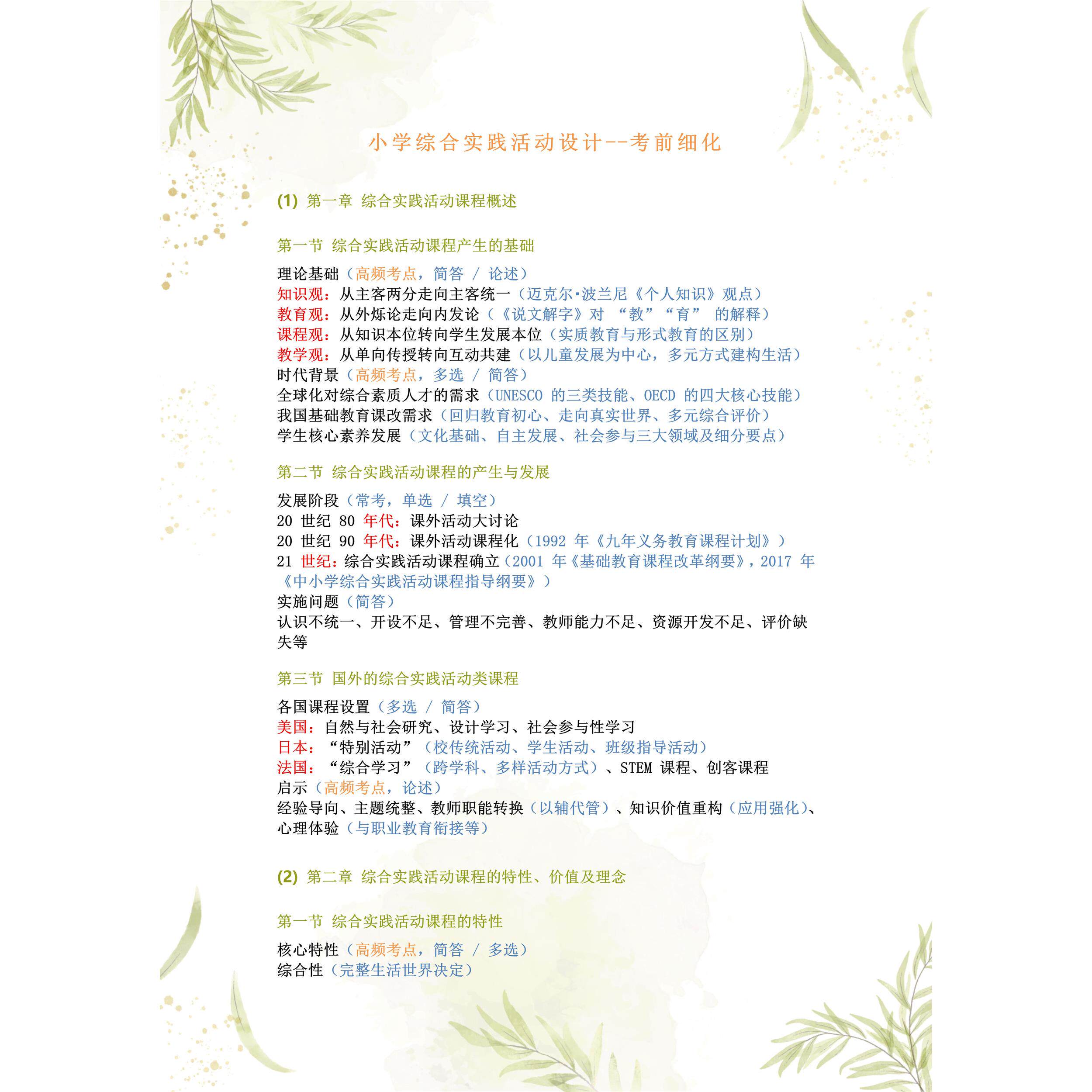 考点重点14462 小学综合实践活动设计考纲讲解自考笔记 资料 自考复习过关思维导图 精讲视频网课 考前押题资料