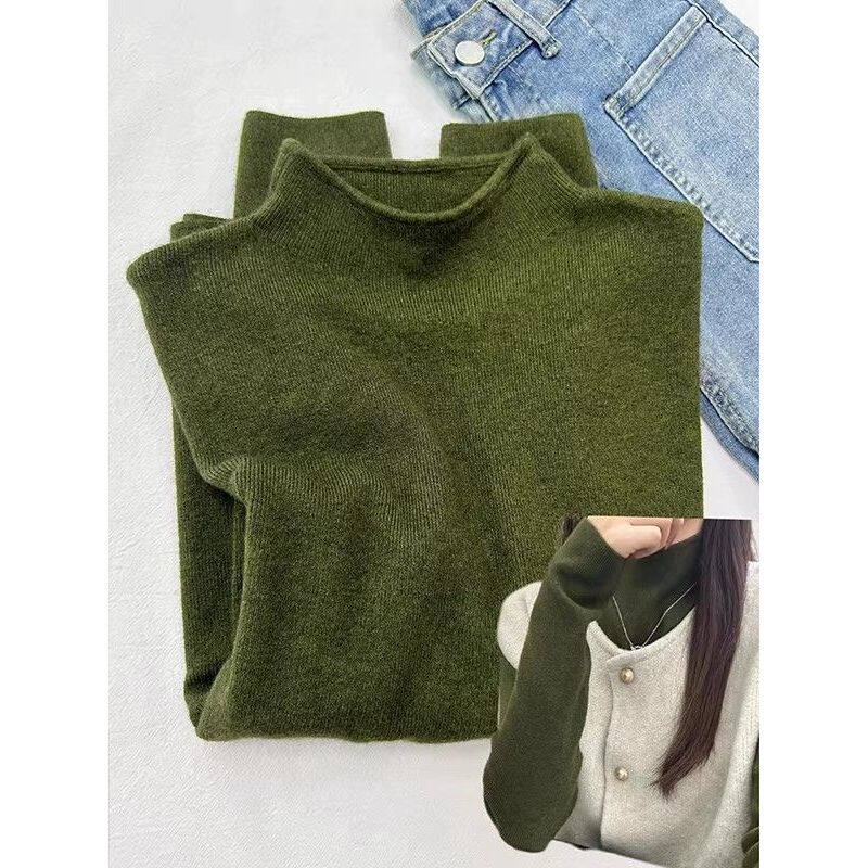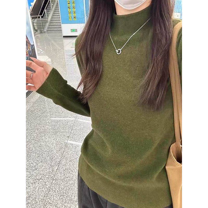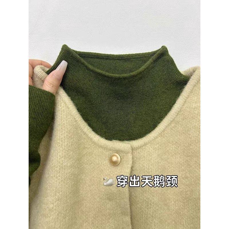 复古绿立领内搭针织衫女2026秋冬新款修身显瘦保暖叠穿打底衫上衣