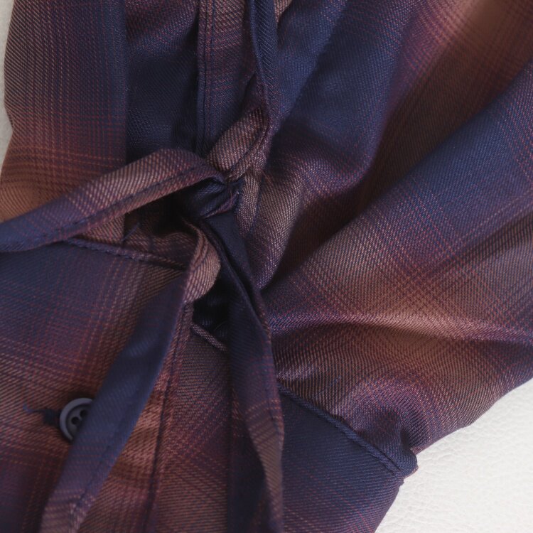 D19038日单26新款客供料单排扣宽松女中长款休闲格子袖长抽绳衬衫