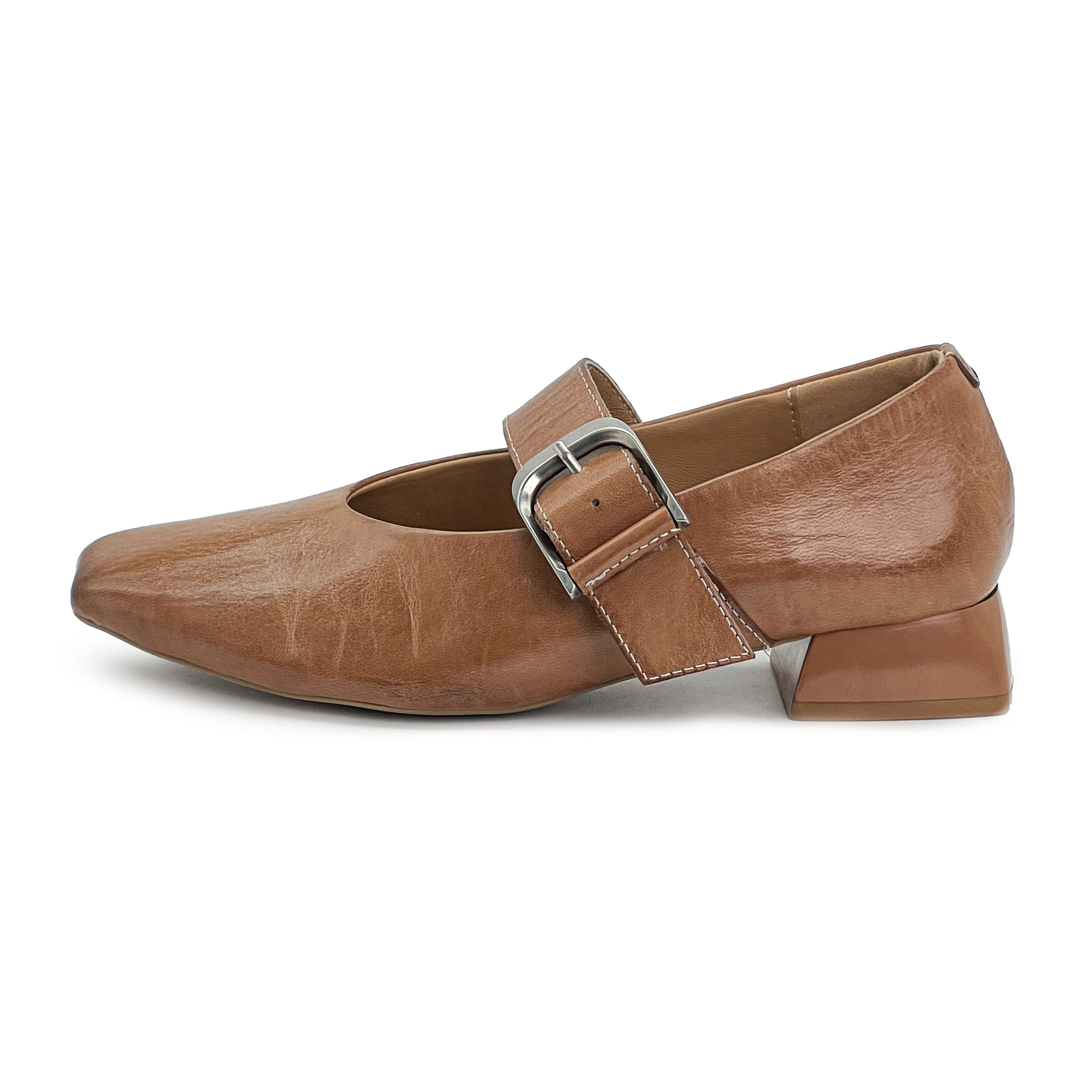 【大愿专享】水洗马皮面 方头擦色小单鞋63280