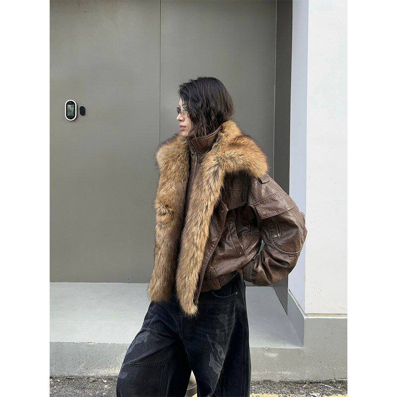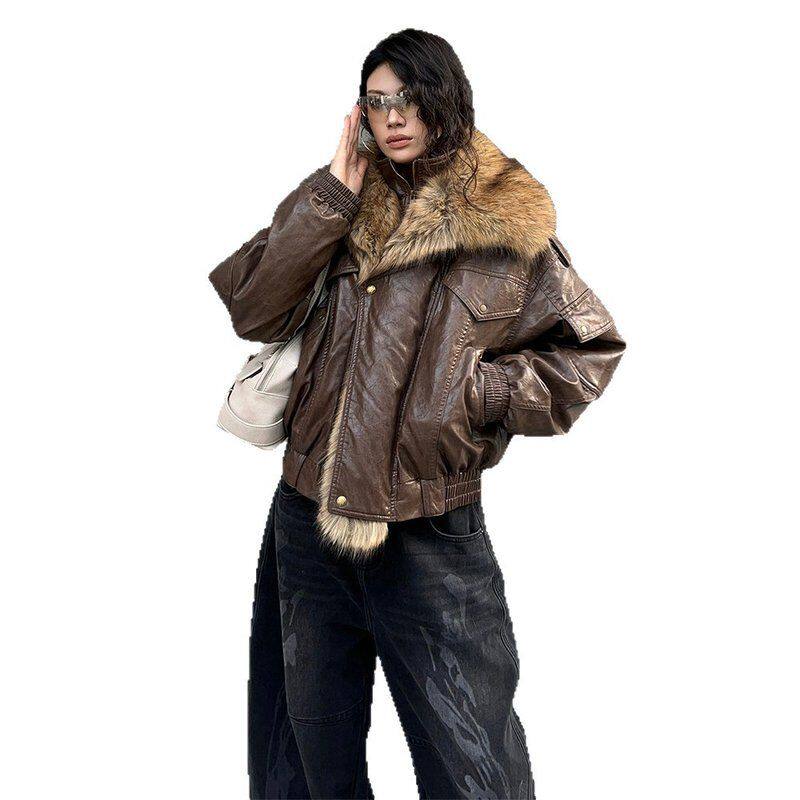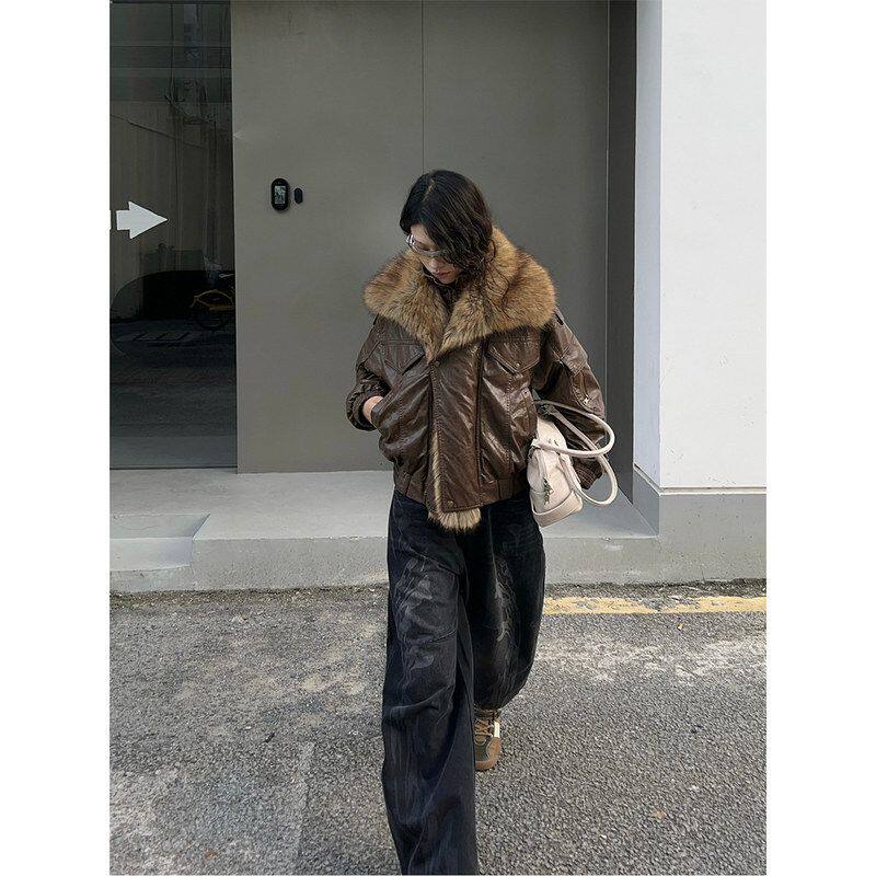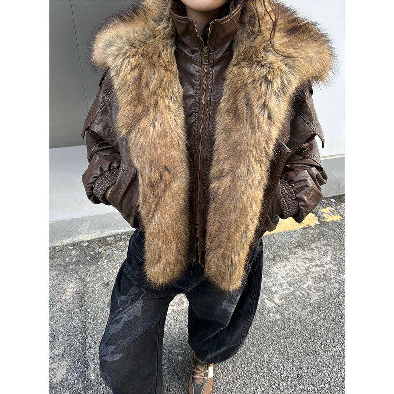新款白90复古鸭绒羽绒服外套冬季毛领夹克2025美式女皮衣85330