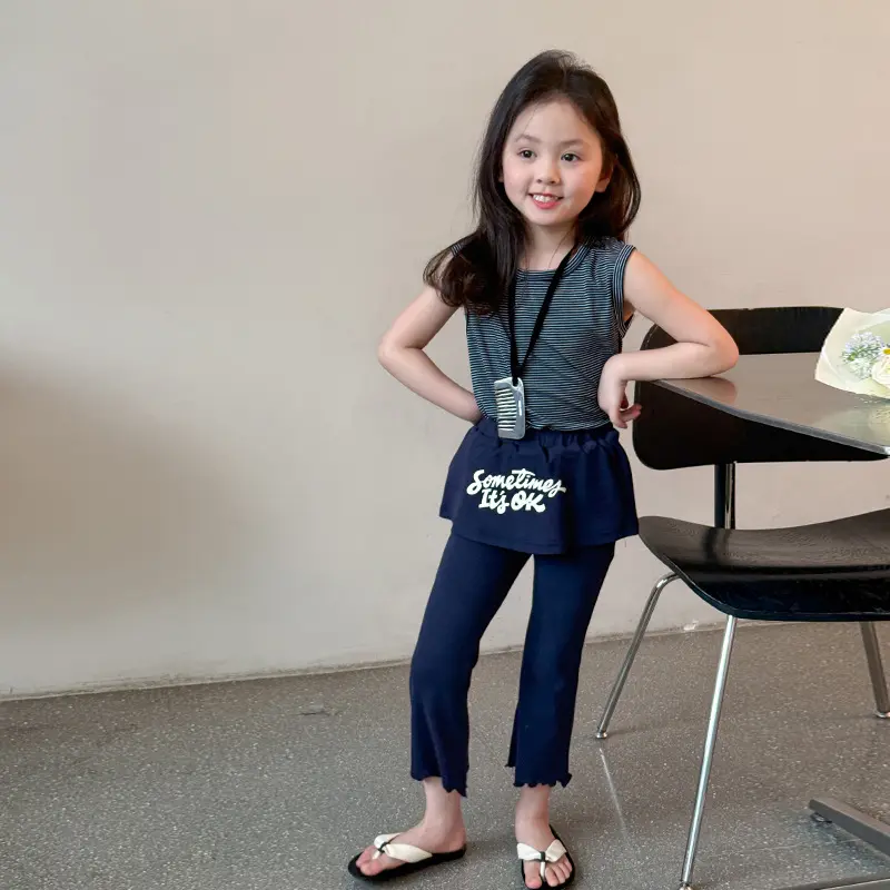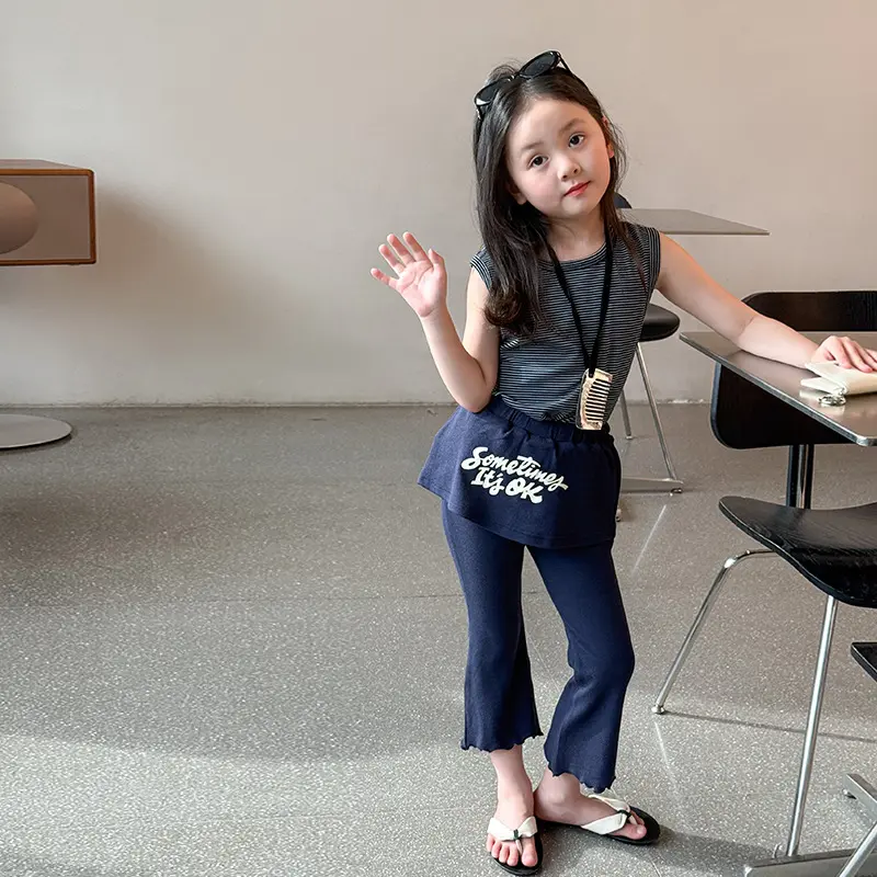 女童夏季薄款2025新款儿童时尚洋气时髦背心喇叭裤