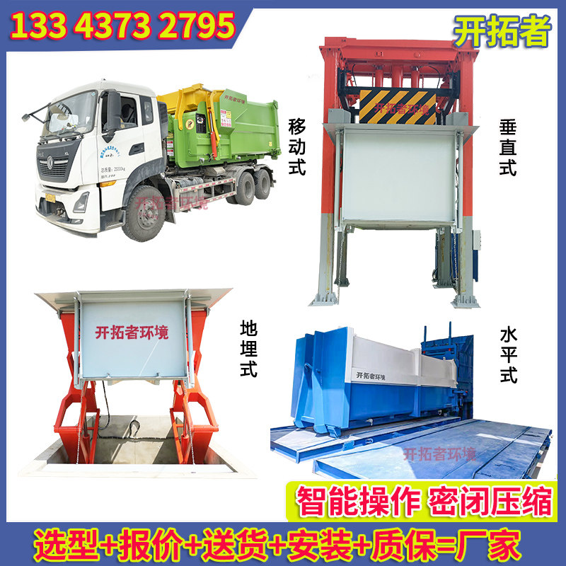 水平式垃圾站压缩装置 60t分体式垃圾压缩机 斜压式垃圾中转设备