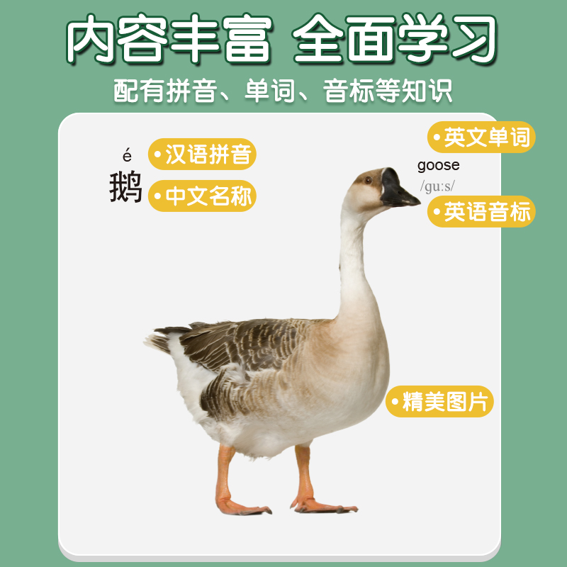 动物卡片撕不烂早教拼音3岁认知儿童识字看图识物启蒙幼儿园