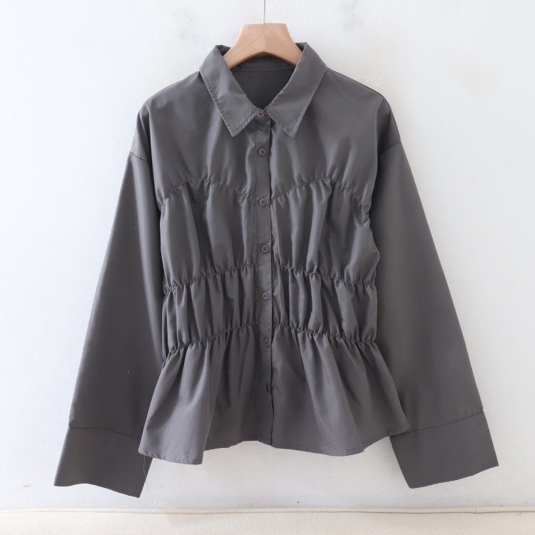 首页> 女装> B07026日单新款客供料单排扣宽松显瘦弹力松紧女纯色气质长袖衬衫