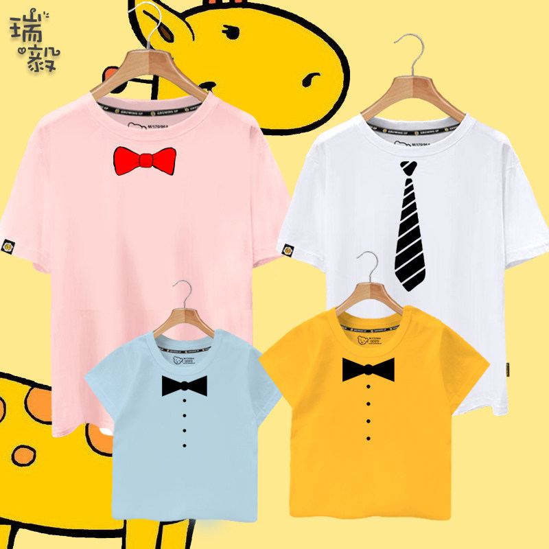 假领带领结蝴蝶结金牌个性创意大中儿童装短袖T恤衫男女学生半袖