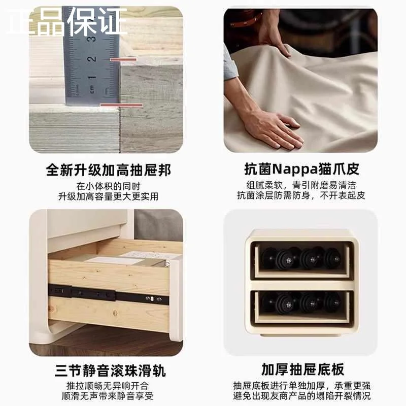 实木床头柜奶油风收纳简约现卧代家用小柜子室轻奢小型床边新品