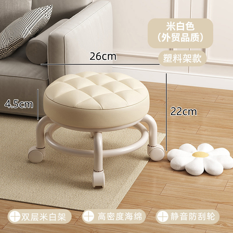 万向轮小凳子轮矮凳门口换鞋凳可移动带娃神器圆凳带滑轮美缝新款