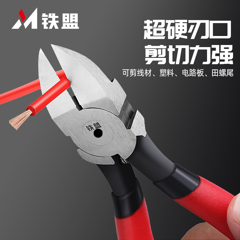 铁盟斜口钳可剪钢丝剪钳工业水口剪斜嘴钳斜口钳电工专用偏口钳子