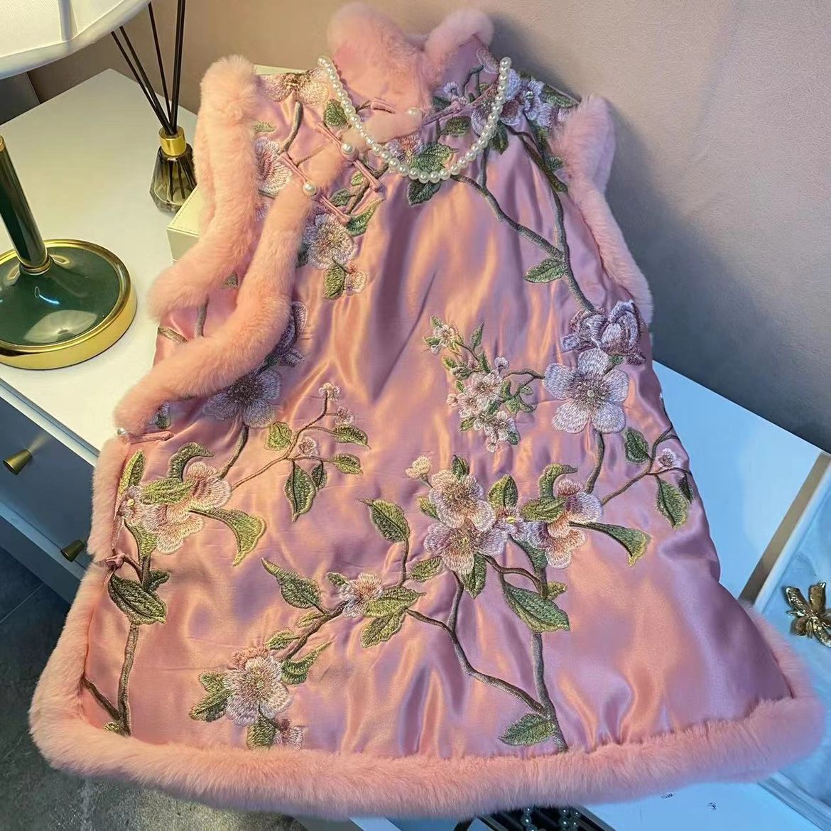 冬季新款时尚立领改良版无袖盘扣粉红色短款小背心旗袍马甲百搭款