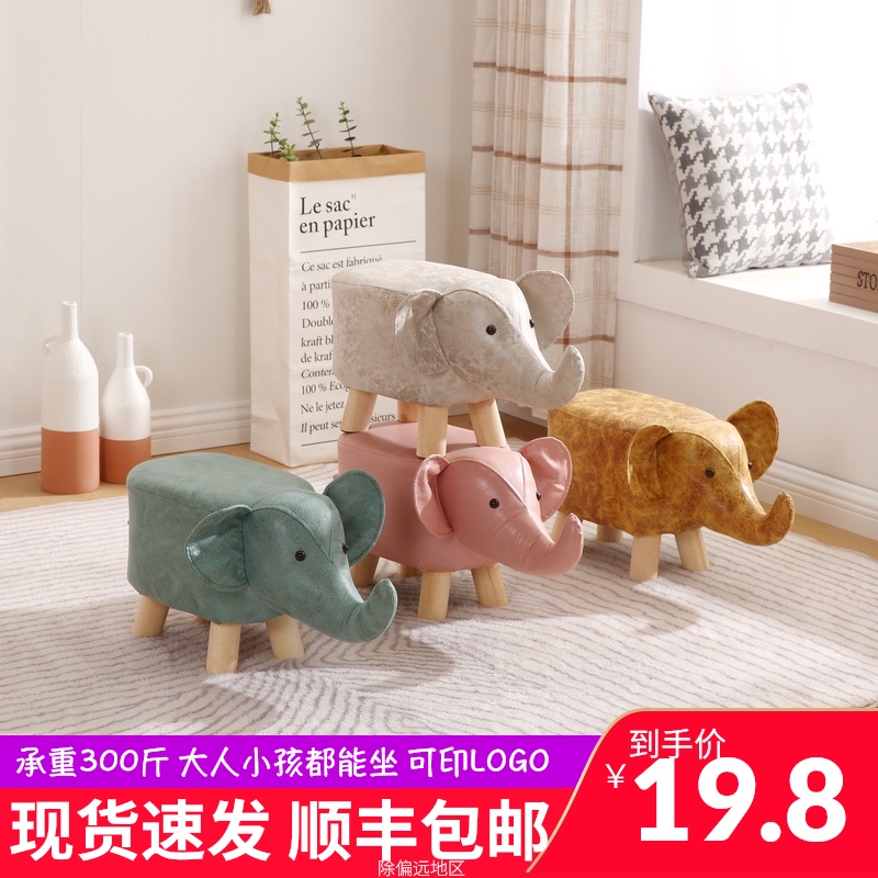 儿童动物凳子家用创意实木矮凳结实耐用小板凳大象造型可爱换鞋凳