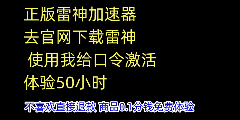 雷神加速器体验50小时不满意直接退即可加速网络或者单机游