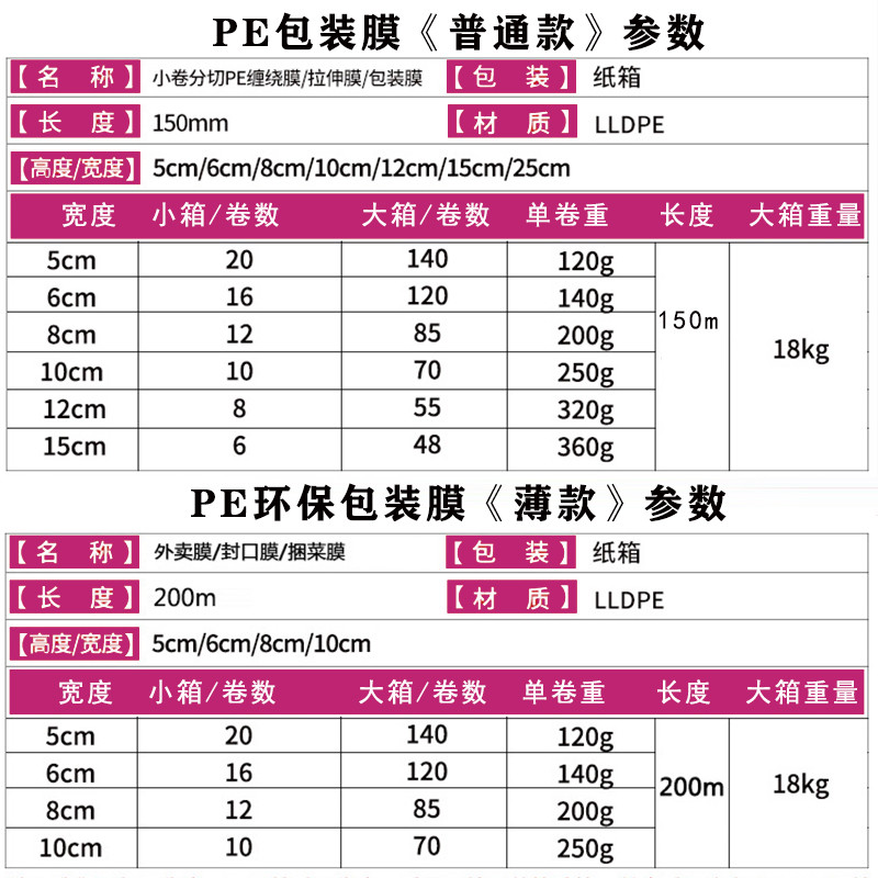 勒德小卷PE环保缠绕膜捆菜膜防漏外卖打包盒封口膜包装拉伸保鲜膜