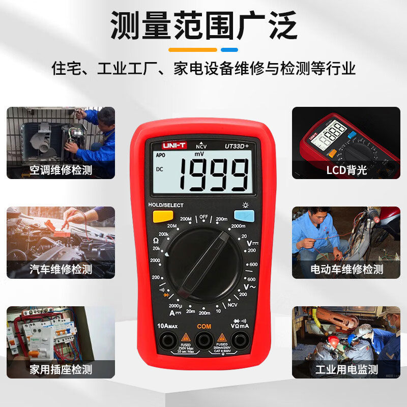 优利德UT33万用表数字高精度自动数显测电容多功能防烧电工万能表