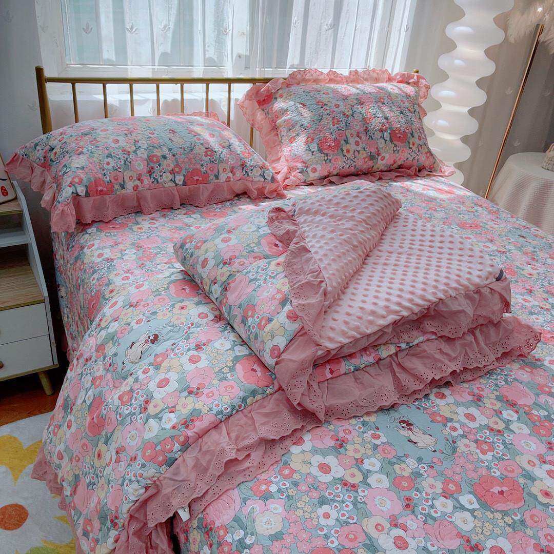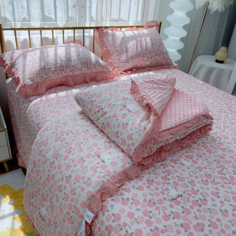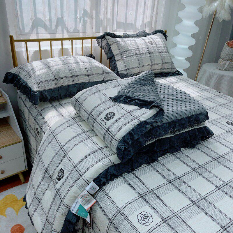 爆款韩版棉法式夹棉床盖三件套双人豆豆秋冬被子夹全棉加厚床单