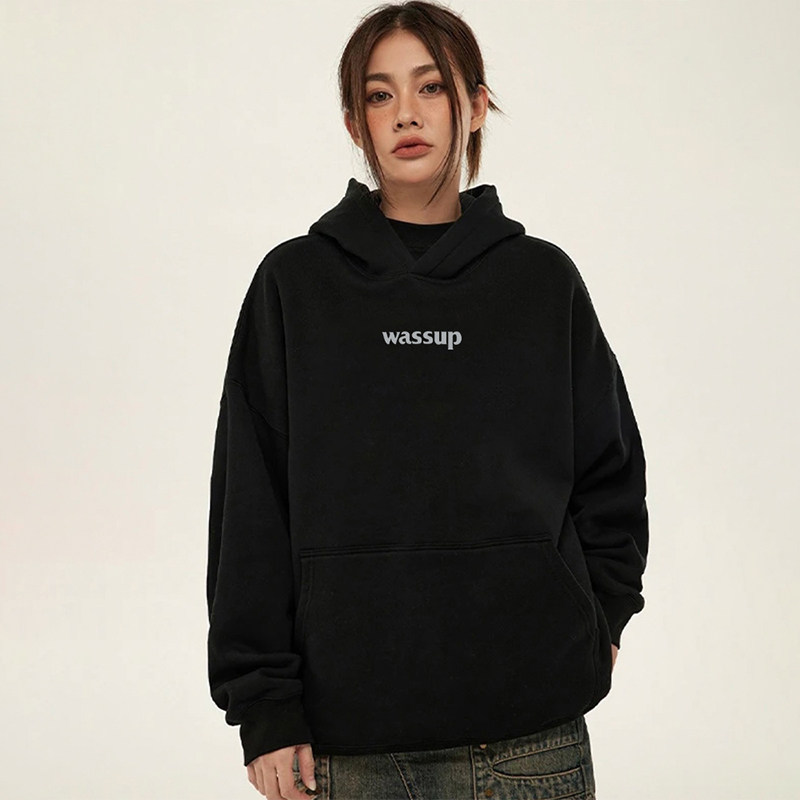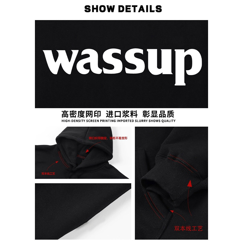 WASSUP ASCEND秋冬美式情侣宽松潮牌加绒连帽卫衣外套男女生上衣
