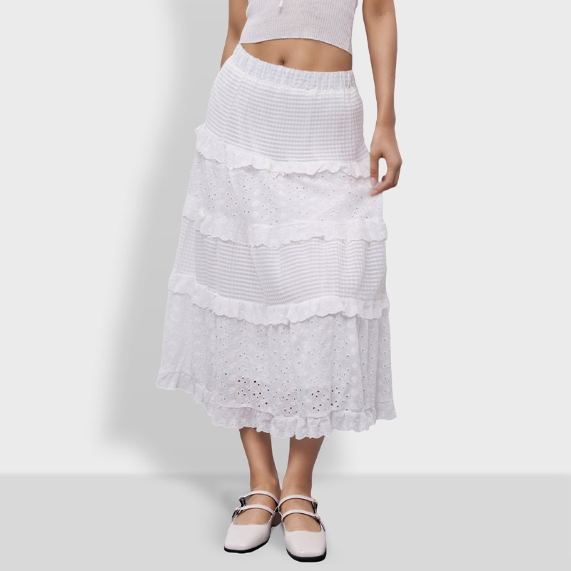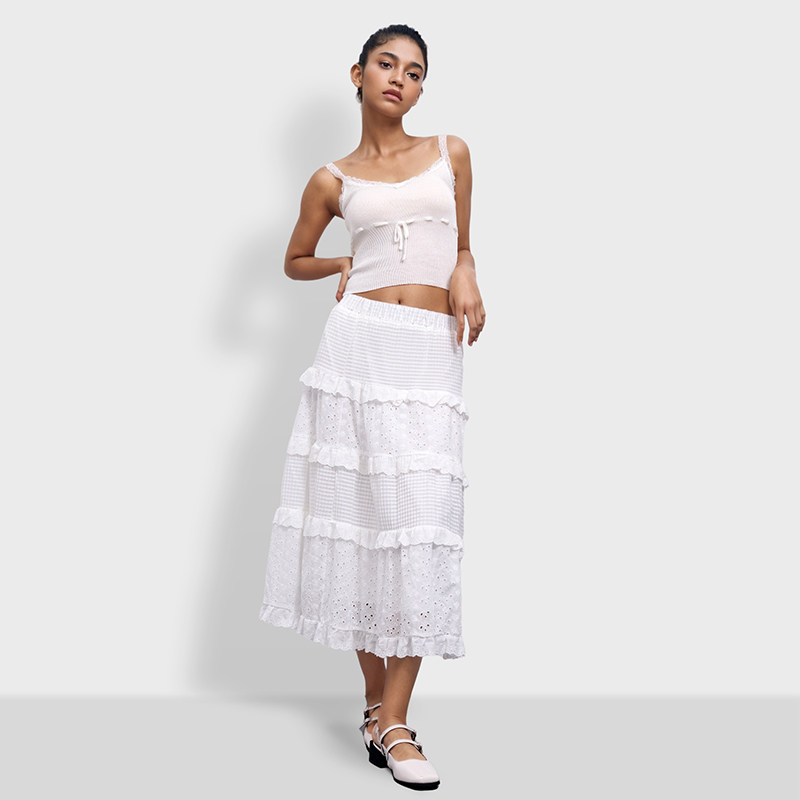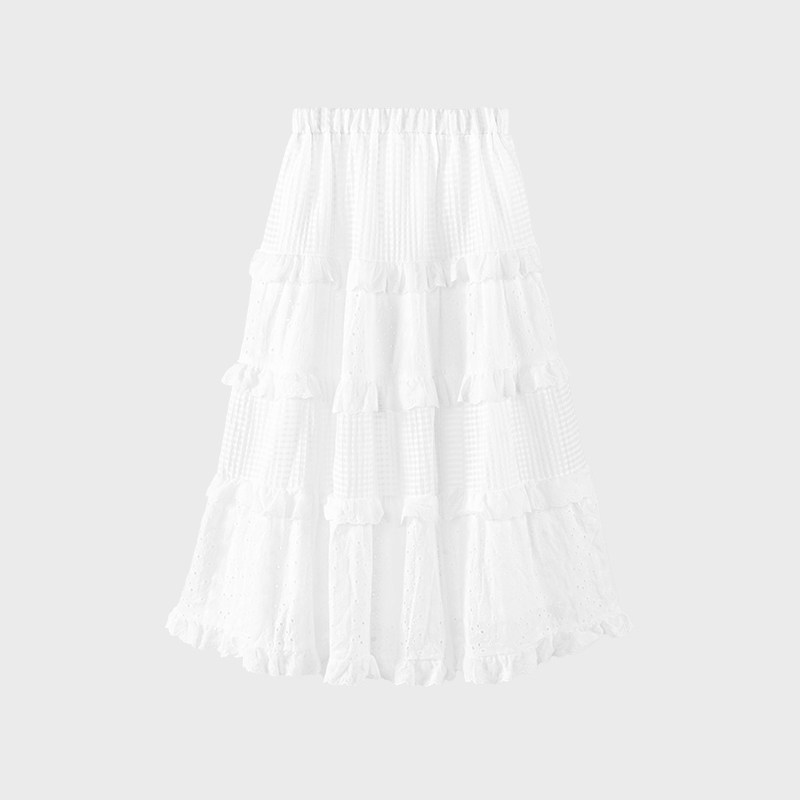 BF半身裙女2025新款纯色钩花镂空蛋糕裙A字长裙今年流行爆款半裙