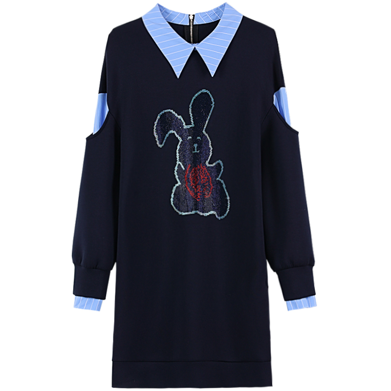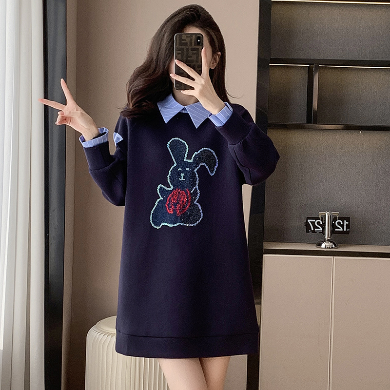加绒加厚卫衣女士春秋高级感气质中长款休闲遮肚子减龄保暖连衣裙