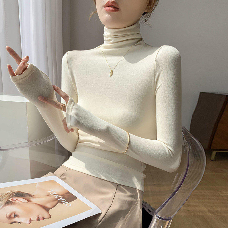 高领打底衫女内搭秋冬新款修身高领洋派加绒加厚长袖T恤女上衣