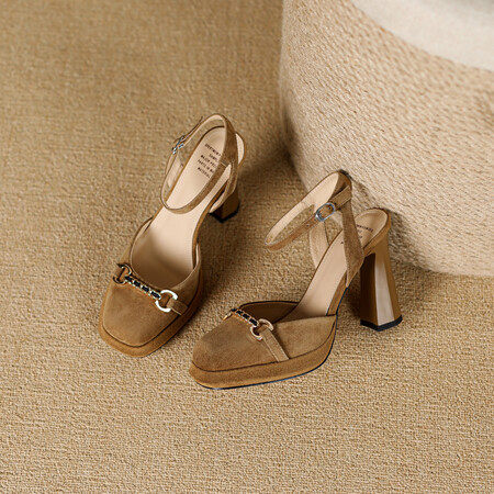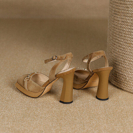 10cm不累脚增高显瘦包头2025凉鞋女一字带粗跟防水台高跟鞋